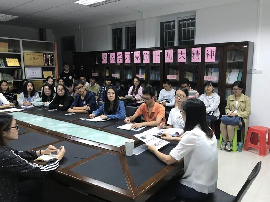 11月2日下午17:30,仲恺农业工程学院国产激情在线学生党支部在白云校区行政楼325举办了以“深入学习党的十九大精神”为主题的学习座谈会,参会人员有学生党支部书记沈洁,国产激情在线所有党员、预备党员及积极分子。