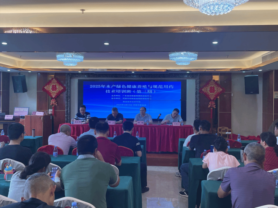 团队一行来到河源市紫金县,为当地水产养殖户带来了一场实用的水产绿色健康养殖与规范用药技术培训,河源市水生动物疫病防控机构技术员、病害测报员、养殖场技术员及相关工作人员共计 90 余人参加现场培训。