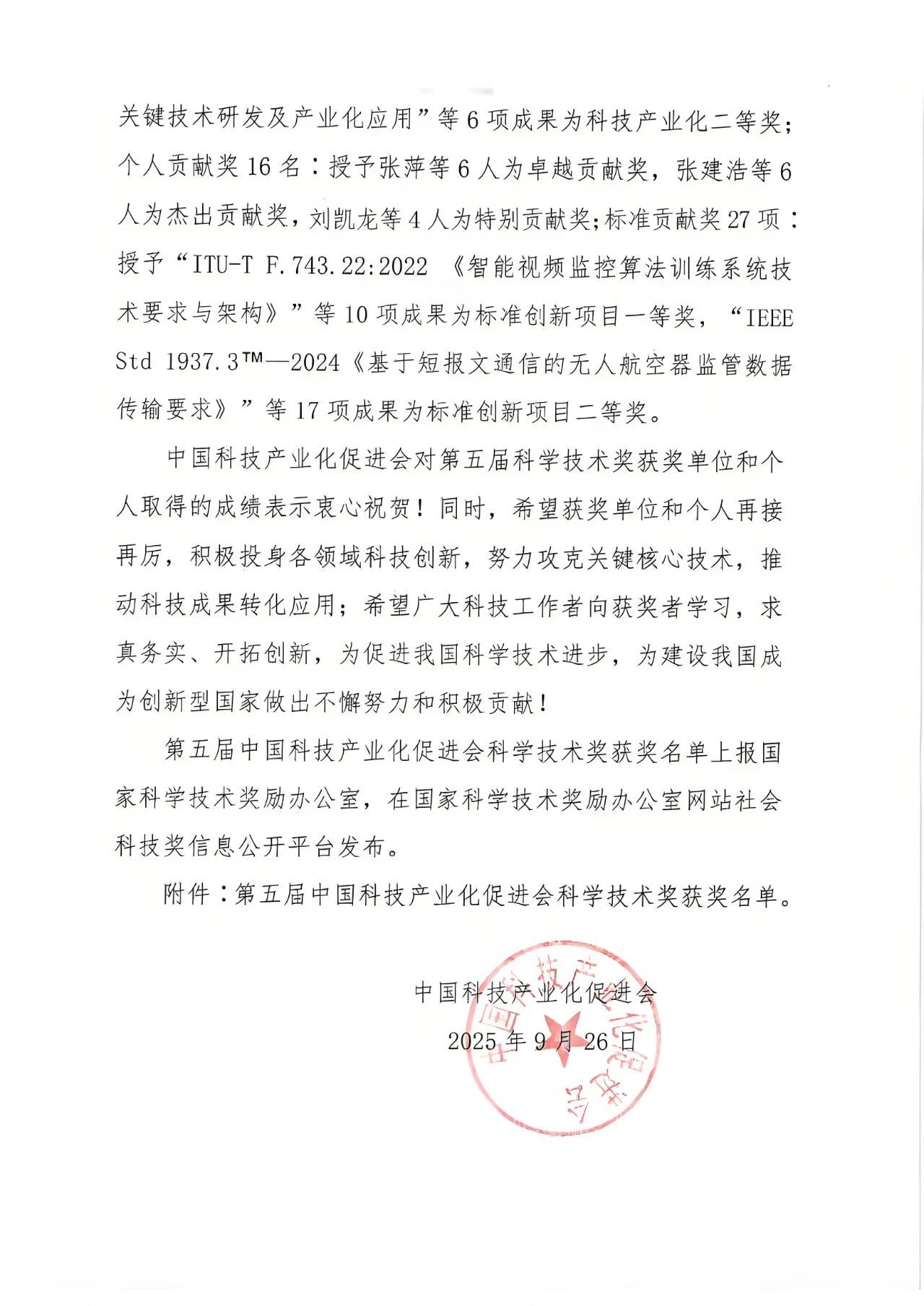 中国科技产业化促进会科学技术奖经国家科技奖励工作办公室备案,重点表彰在科技成果转化和产业化方面作出突出贡献的集体和个人。此次获奖,充分体现了我院科研工作坚持"把论文写在大地上"的鲜明导向。