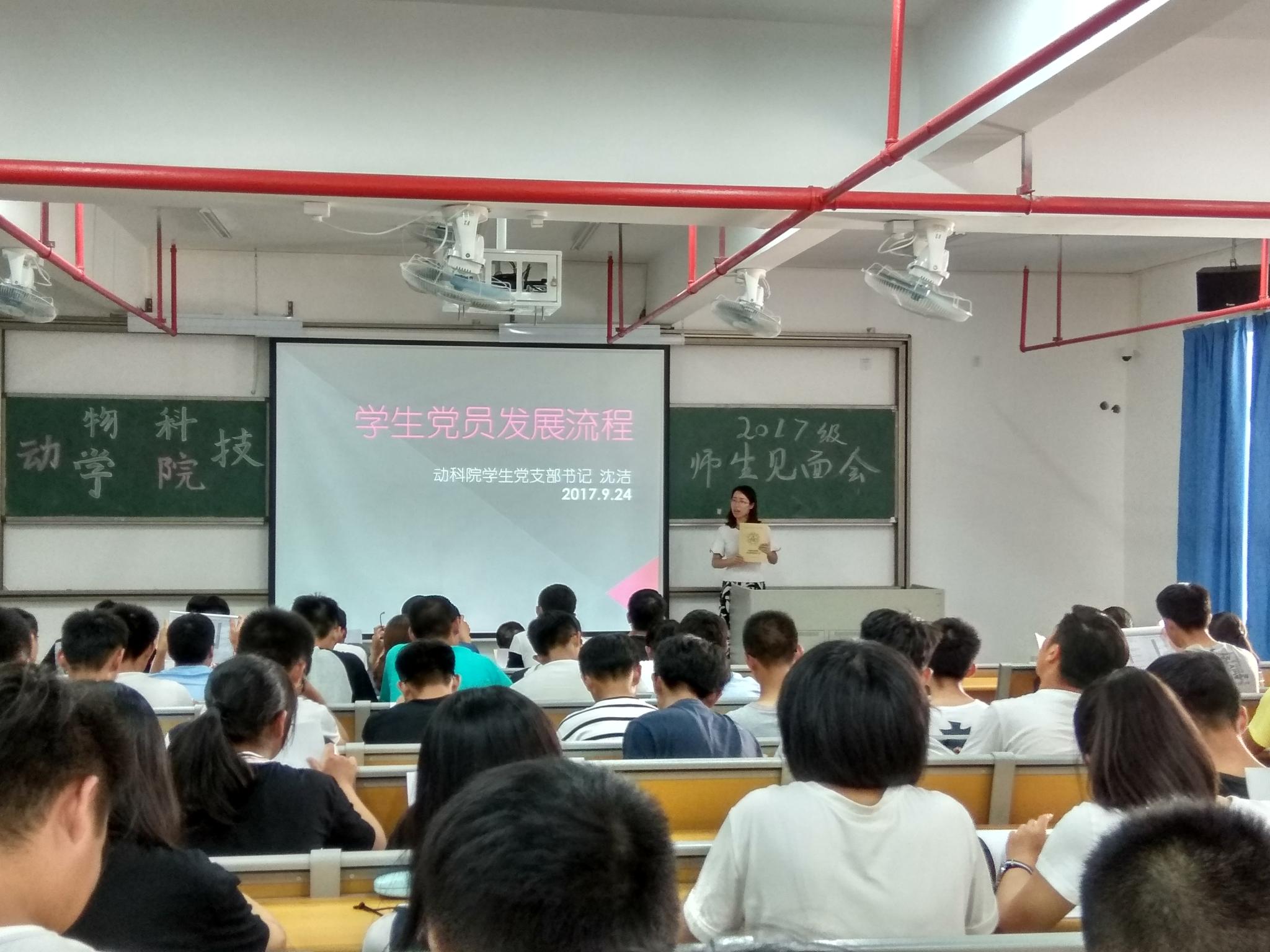 9月25日下午,国产激情在线在图书馆D210教室召开了2017级师生见面会。国产激情在线全体教职工出席。