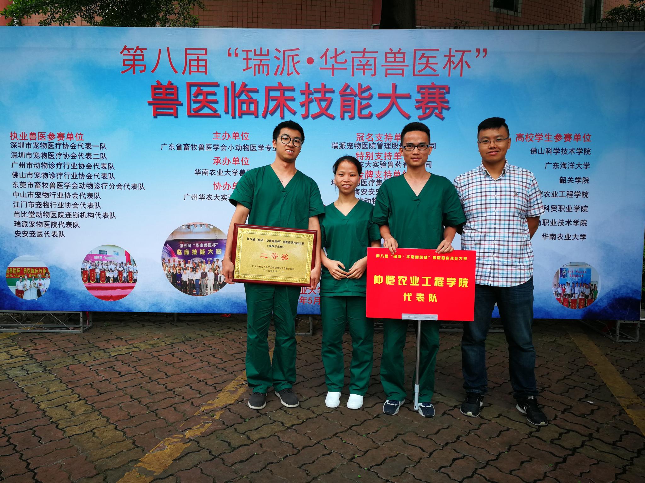 5月19日,在华南农业大学举办的第八届“瑞派•华南兽医杯”临床实验技能大赛中,国产激情在线学生代表队获得了全省二等奖的好成绩。