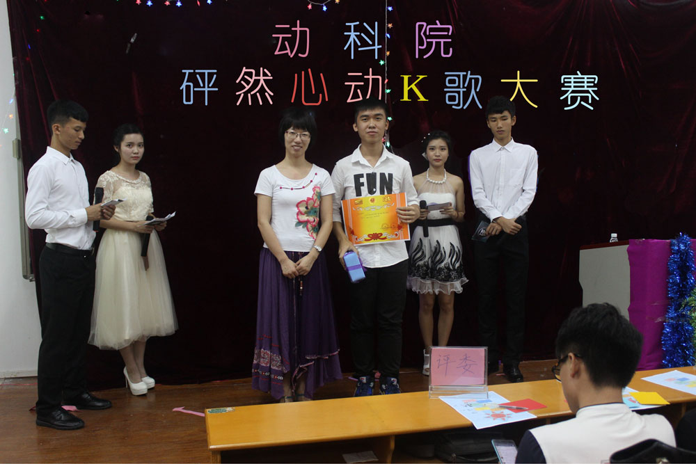 11月21日晚七点,动科院第一届K歌大赛决赛于杨楼307举行,除三位评委外,还有沈洁老师、梁日深老师等人担任嘉宾,选手分别为初赛决出的五位选手谭奇珺、朱晓琳、黄楚妮、李慧卿、杨妍昀和三位踢馆选手。