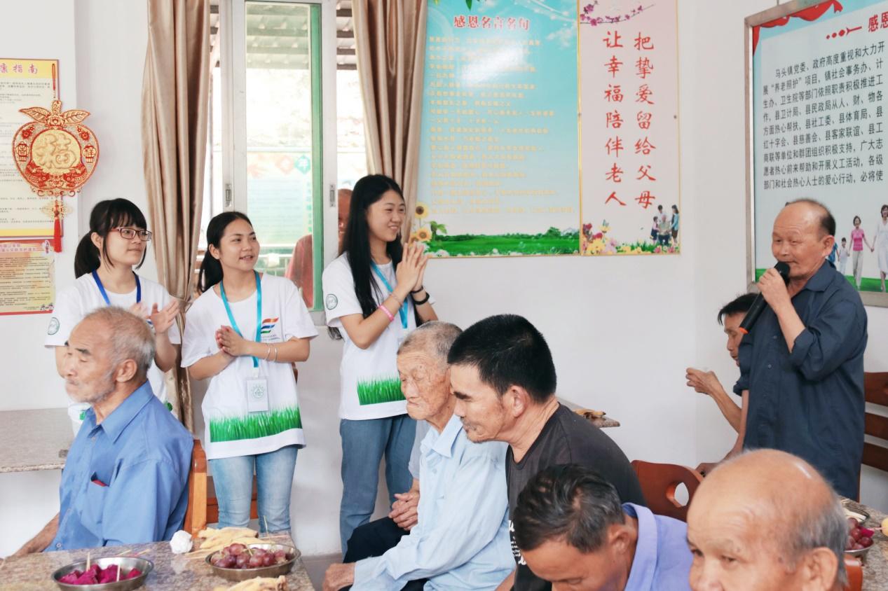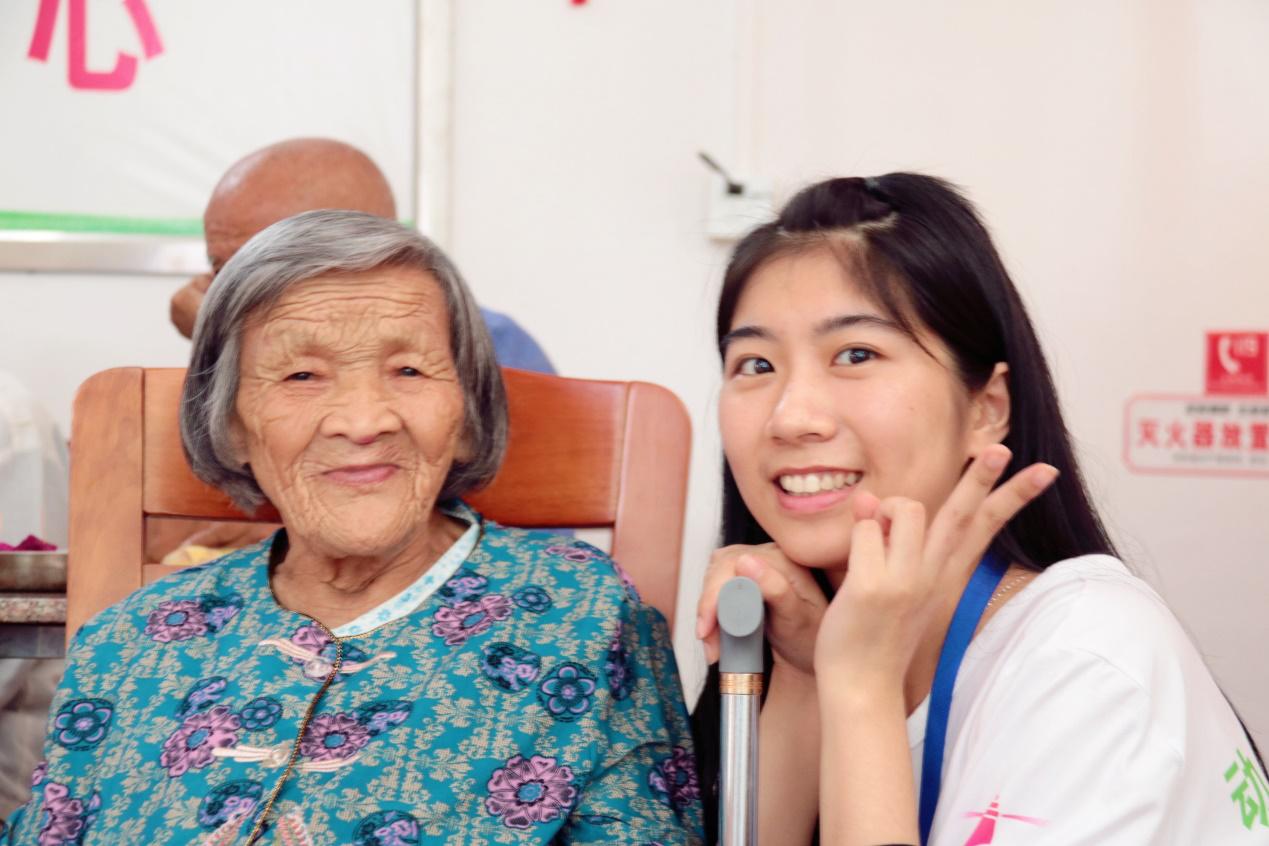 文娱组组员们与老人谈心,倾听他们的青葱岁月,一些语言不同的组员们也现学客家话后与老人们聊天,虽然语言上略显青涩,但是字里行间流露出的真诚情感使得彼此的距离更加靠近。