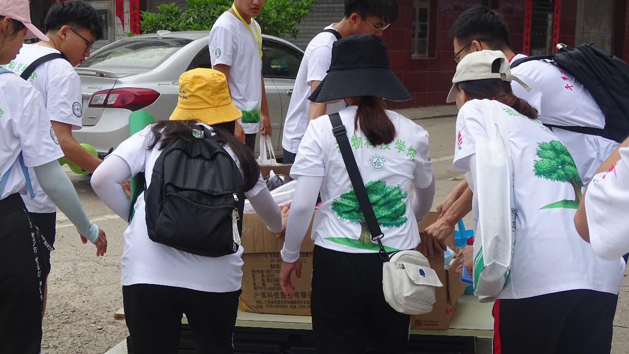 宣传组与调研2组一同前往马头镇镇政府摆点宣传工作以及调研。为了宣传效果更佳,两组组员们提着调查问卷、物资以及扇子等礼品前往摆点地进行布置。