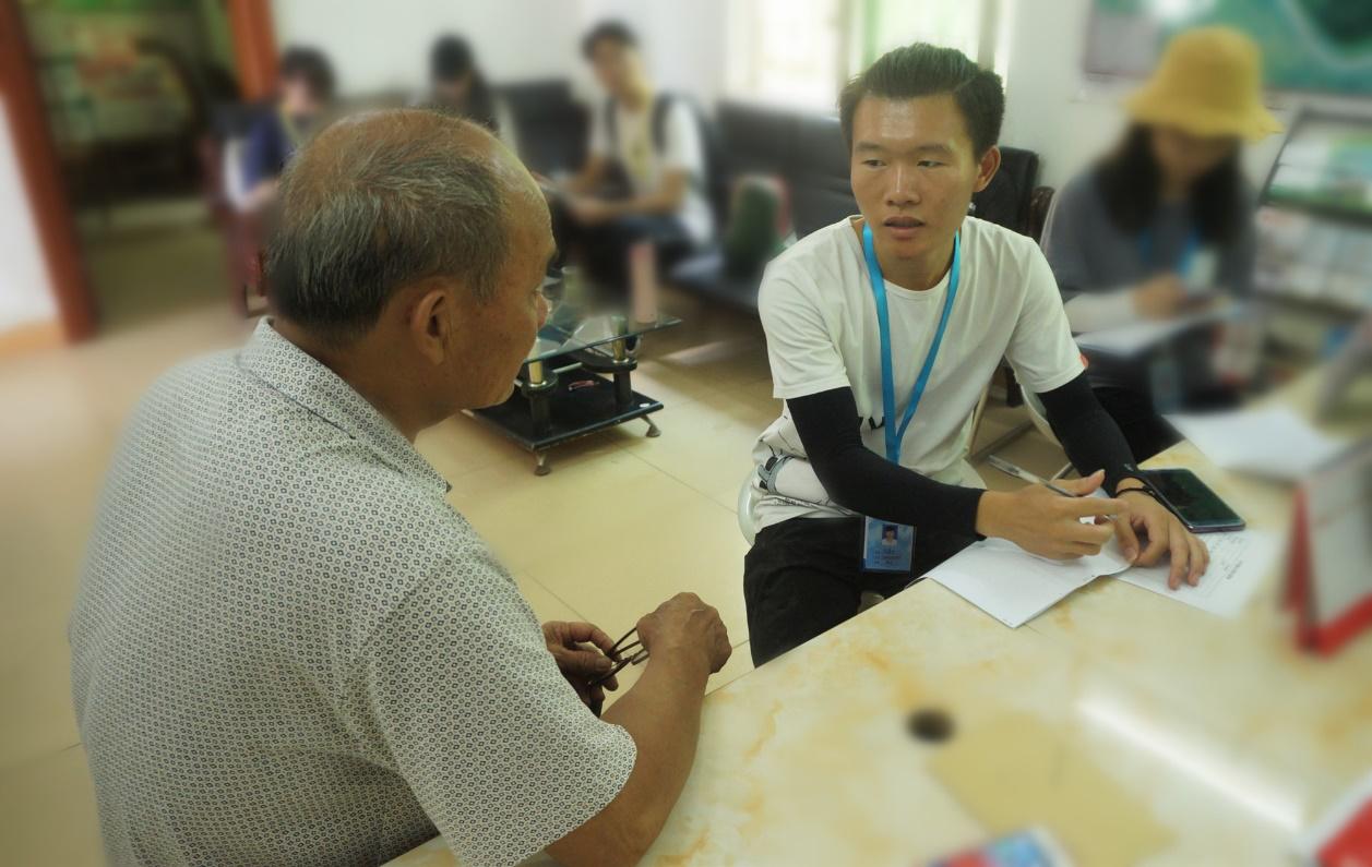 上午8时,调研组、义教组、宣传组同时出发前往各组的目的地开始今天的实践调研活动。调研1组前往乌石岗村许屋坝和军屯村进行有关“乡村基础教育情况及存在问题”问卷调查,组员们穿行于阡陌交通的乡间,挨家挨户进行访问。当地居民十分热情好客,待人亲切,他们积极地完成问卷并对乡村教育问题提出建议。调研1组还到乌石岗村党群服务中心进行有关“乡村振兴”和“乡村基础教育”的访谈,组员们了解到乌石岗村近几年的扶贫情况和发展方向,同时了解到当地目前的基础教育情况和存在的一些问题。而调研2组则前往新丰县进行调研、访谈活动。调研过程中,有幸遇到仲恺农业工程学院13届毕业生曾师兄并对其进行了有关国家出台“乡村振兴”政策的访谈,组员们收获了曾师兄对这一相关问题比较全面的回答。尽管烈日炎炎,暑气蒸人,调研组的组员们浑身被汗水浸湿,但每一位组员不辞辛苦、毫不懈怠,都抱着对调研的热情,认真做好每一次的问卷调查和每一次访谈。