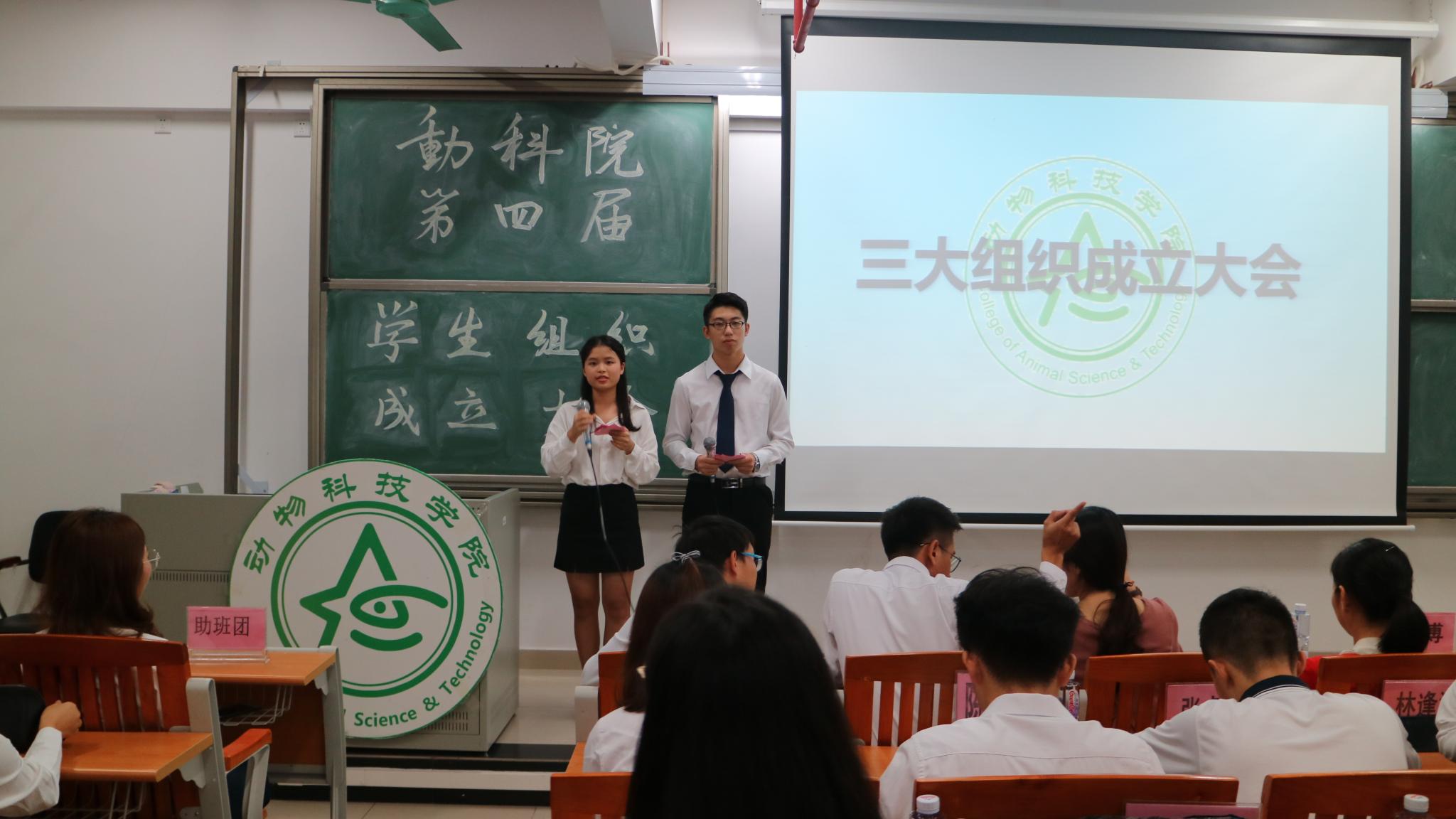 10月21日晚19点40分,国产激情在线第四届学生组织成立大会在D栋教学楼508顺利举行。动科院党总支副书记朱路平、辅导员许鸿、李博及院团委、学生会、新闻中心﹒易班分站、秘书处、助班团的全体新老干部出席本次会议。