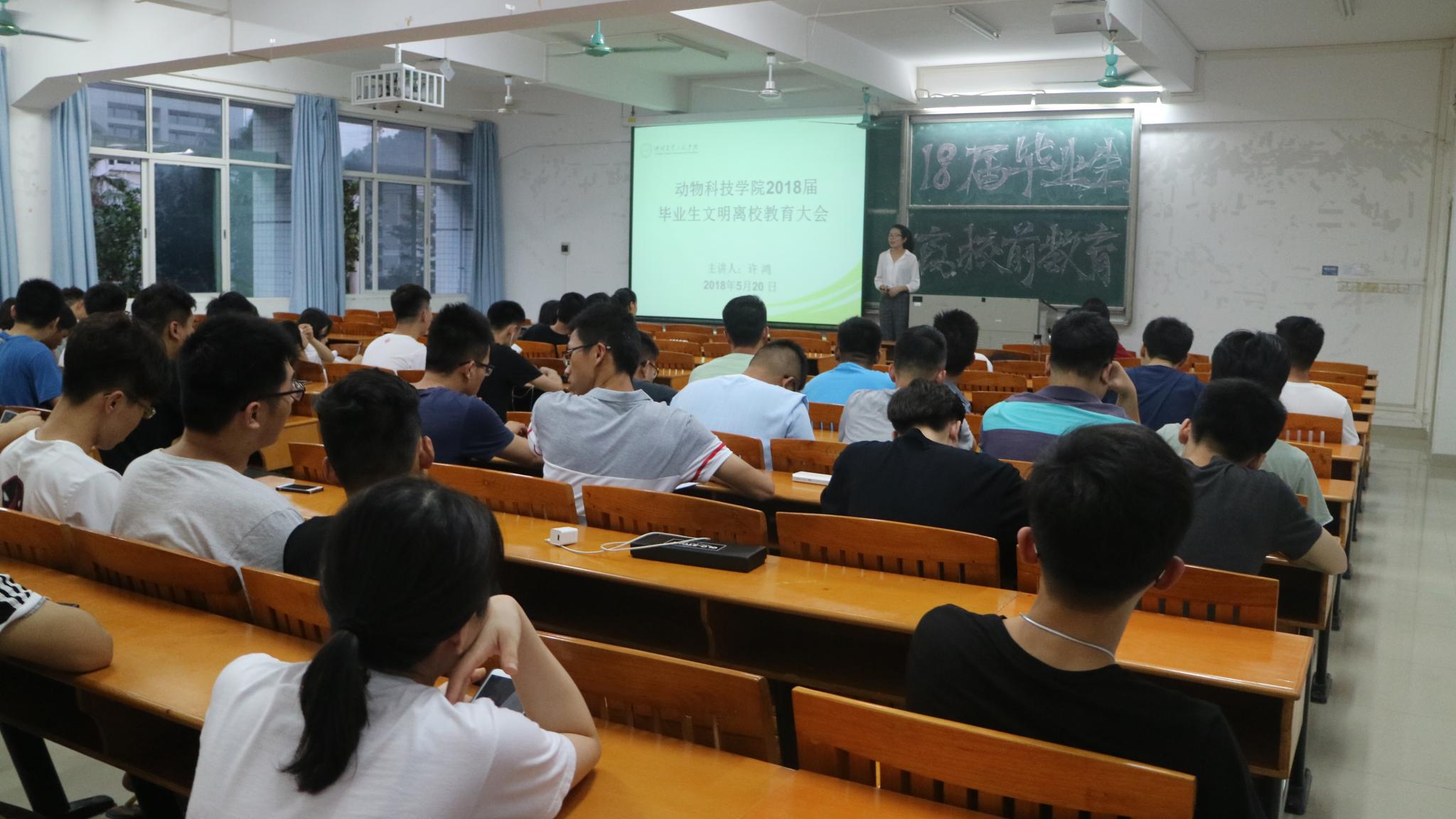 2018年5月20号晚上7点,国产激情在线在杨钊杨勋楼209举行2018届毕业生离校前教育。2018届全体毕业生出席本次会议,辅导员许鸿老师担任主讲。