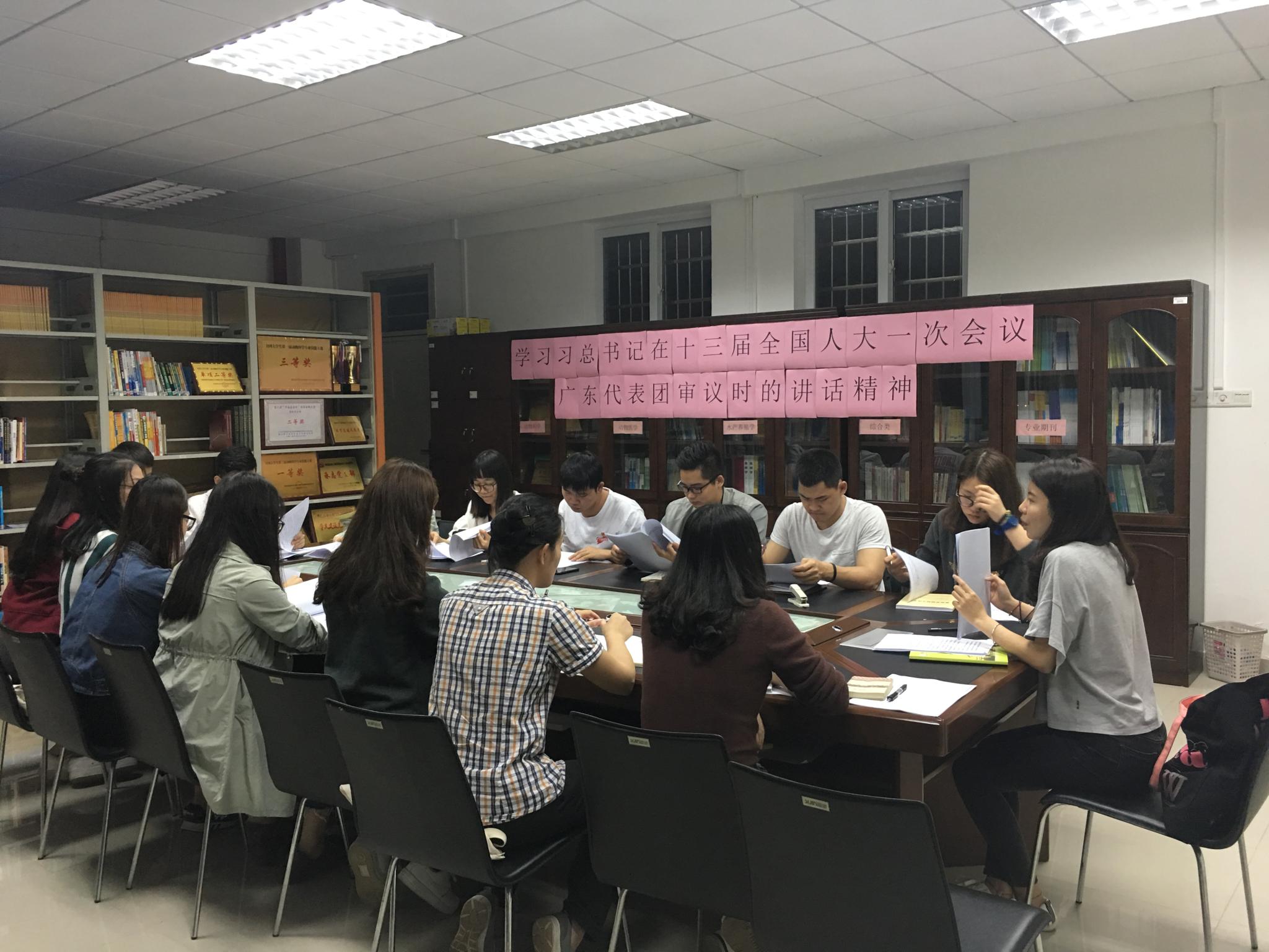 3月29日晚上,国产激情在线学生党支部在刘宇新楼325会议室召开学习十三届全国人大一次会议广东代表团审议时的重要讲话精神讨论会。本次会议由国产激情在线学生党支部书记许鸿主持,国产激情在线学生党支部全体党员出席了本次会议。