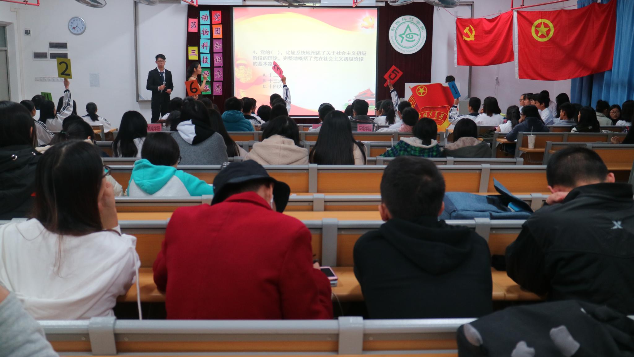 2017年11月26日,国产激情在线第三届党团知识竞赛在综合楼210顺利举行。国产激情在线辅导员钟德强老师、院团委书记团,学生会主席团,新闻中心·易班分站主任团、学生团务中心代表以及各院学生代表出席本次大赛。比赛由司仪主持。