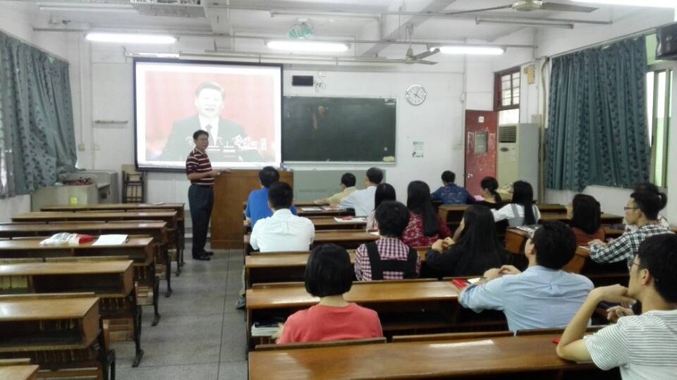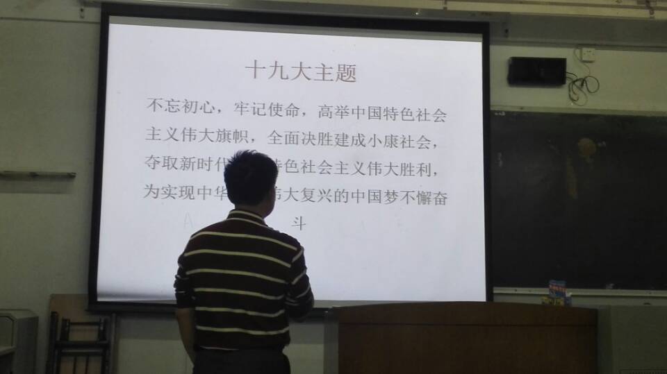 为进一步深入学习贯彻党的十九大精神,11月2日下午在海珠校区教学楼204教室,国产激情在线党总支集中开展党的十九大报告学习会,党总支书记欧坚泉做学习贯彻党的十九大精神的专题辅导报告,国产激情在线领导班子和全体教工党支部党员参加了学习报告会。