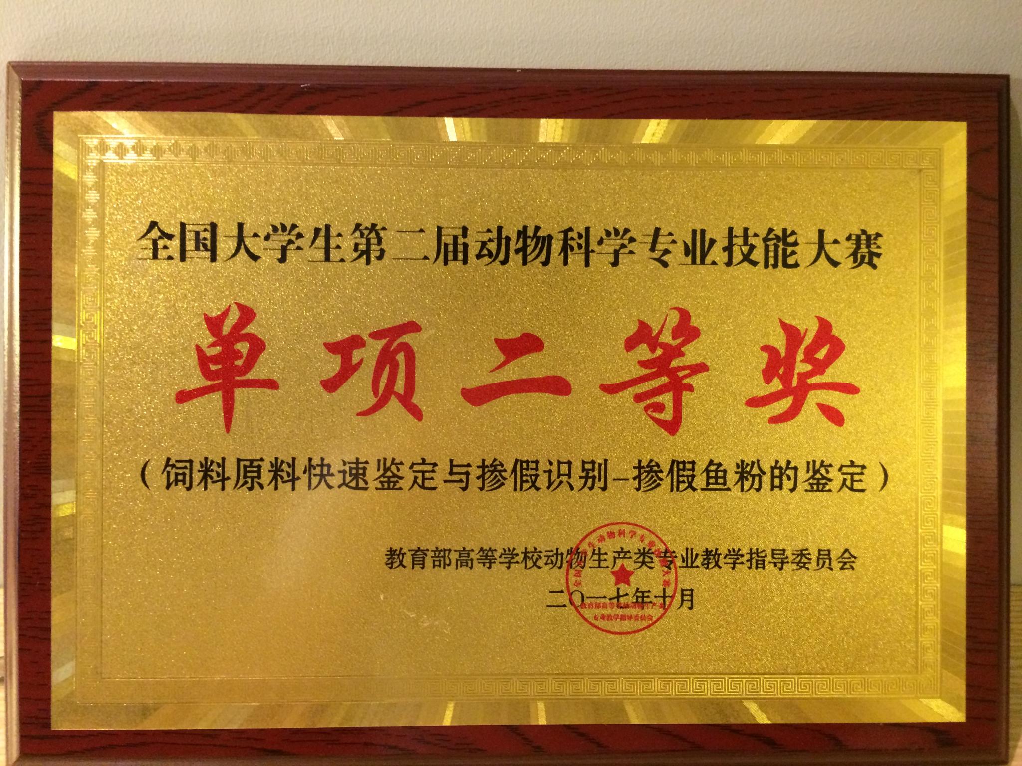 比赛持续2天,共有四个项目的内容:生态畜牧场的规划设计、掺假鱼粉的鉴定、鸡精液的采集和品质检测及人工授精、猪的外形评分及活体背膘厚测定,具有专业性强、技能项目全的特点。动科院黄谦、王明旺、刘欣怡、杨晨四位同学,在比赛中思路清晰、操作规范、答辩得体,体现了非常扎实的理论基础和实验技能,取得了团体一等奖、项目二和项目三两个单项二等奖的优异成绩。