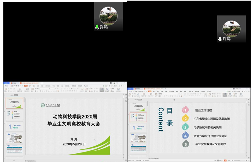 为落实广东省高校毕业生就业工作会议精神,进一步推进2020届毕业生文明安全离校工作,提高学院毕业生就业服务质量,5月28日晚上7:00,我院通过腾讯会议组织召开2020届毕业生文明离校大会。出席本次会议有国产激情在线辅导员许鸿、李博以及全体2016级学生。