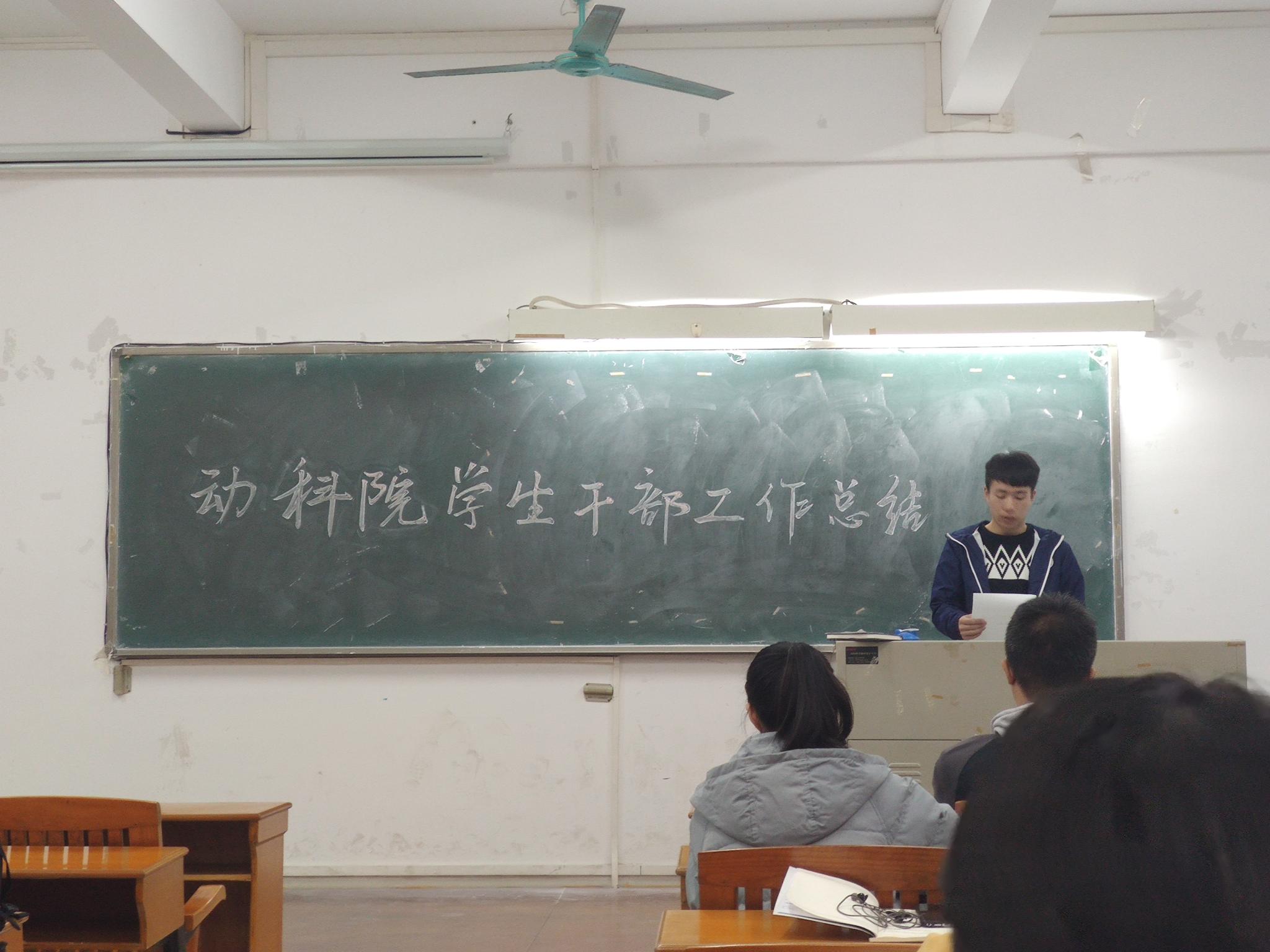 最后,辅导员李博对本次会议进行最后的总结。他肯定并鼓励学生干部的工作,也感谢学生干部的辛勤付出,为学院的各项活动的顺利展开提出表扬。同时,他也提到学生干部在工作中存在某些经验不足,工作细节有待提升等问题。他还为下学期组织工作作出初步计划,并寄语各组织、各部门能够加强团结协作,进一步提高活动完成质量,让动科院的活动办的越来越好。