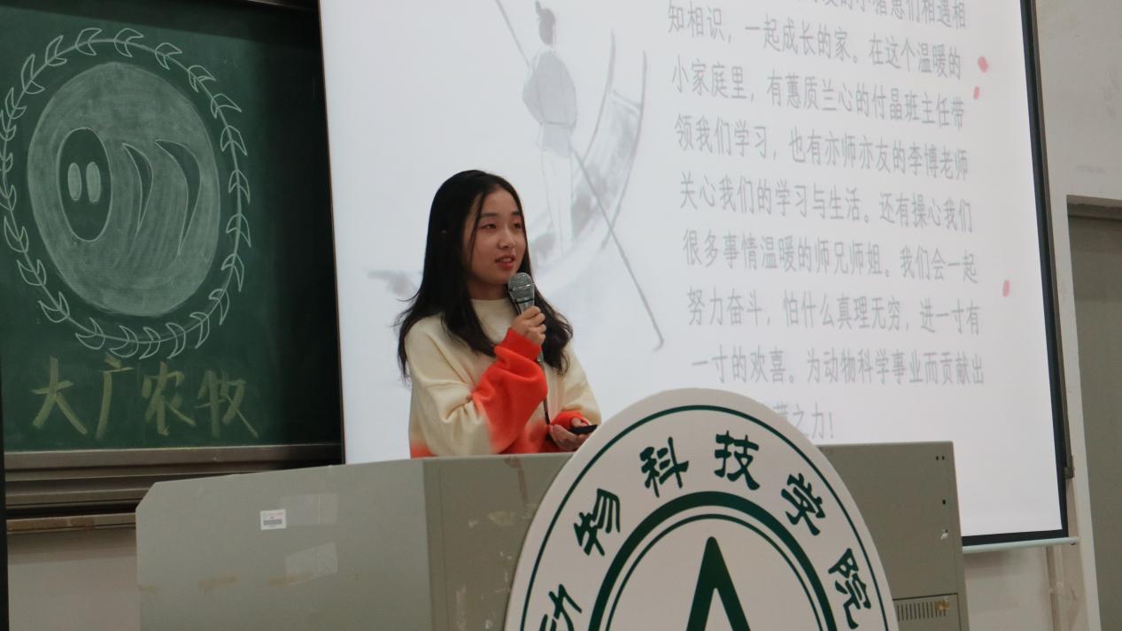 本次活动的主要内容为各班代表上台发言展示本班风采,参与本次展示活动的共有来自三个年级的16个班级。各班代表都围绕本班的班级介绍、班级建设以及易班活动的线上成果进行演讲与展示,有的班级介绍了自己的班歌、班训、班徽、班服、班公众号,还有的班级展示了团日、篮球班赛、男女生节、生日会等课余活动,充分展现了本班的强大凝聚力与优秀的风采。各班代表一轮激情幽默的演讲赢得了观众们的热烈鼓掌,也把比赛的氛围推向高潮。在精彩的讲演过后,开始了抽奖与面对面建群的互动,同学们在欢笑中收获了奖品和友谊。最后,经过评委们的评分汇总,评选出本次活动的一等奖动科171,二等奖水产172、动医181,三等奖水产171、192、动医182。最后,李瑞丽女士表示希望农科专业的学生爱农业、干农业,将农业这一国家命脉发展壮大。李博也表示,希望同学们在这次比赛中,继续关心、热爱班集体,无限增加班集体凝聚力。