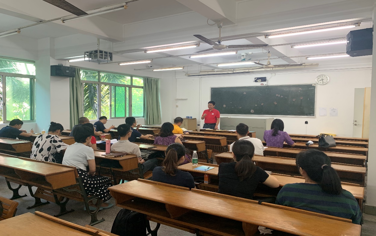 欧坚泉带领大家学习了习近平总书记出席全国教育大会、北京大学师生座谈会及全国思想政治理论课教师座谈会上等重要讲话精神。他强调广大党员要加强自我学习,深刻领会习近平总书记关于教育工作重要论述的丰富内涵和精神实质,立足教师岗位践行不忘初心,立德树人,扬师德,正师风,争做四有好老师,构建和谐的师生关系,营造良好的育人环境。