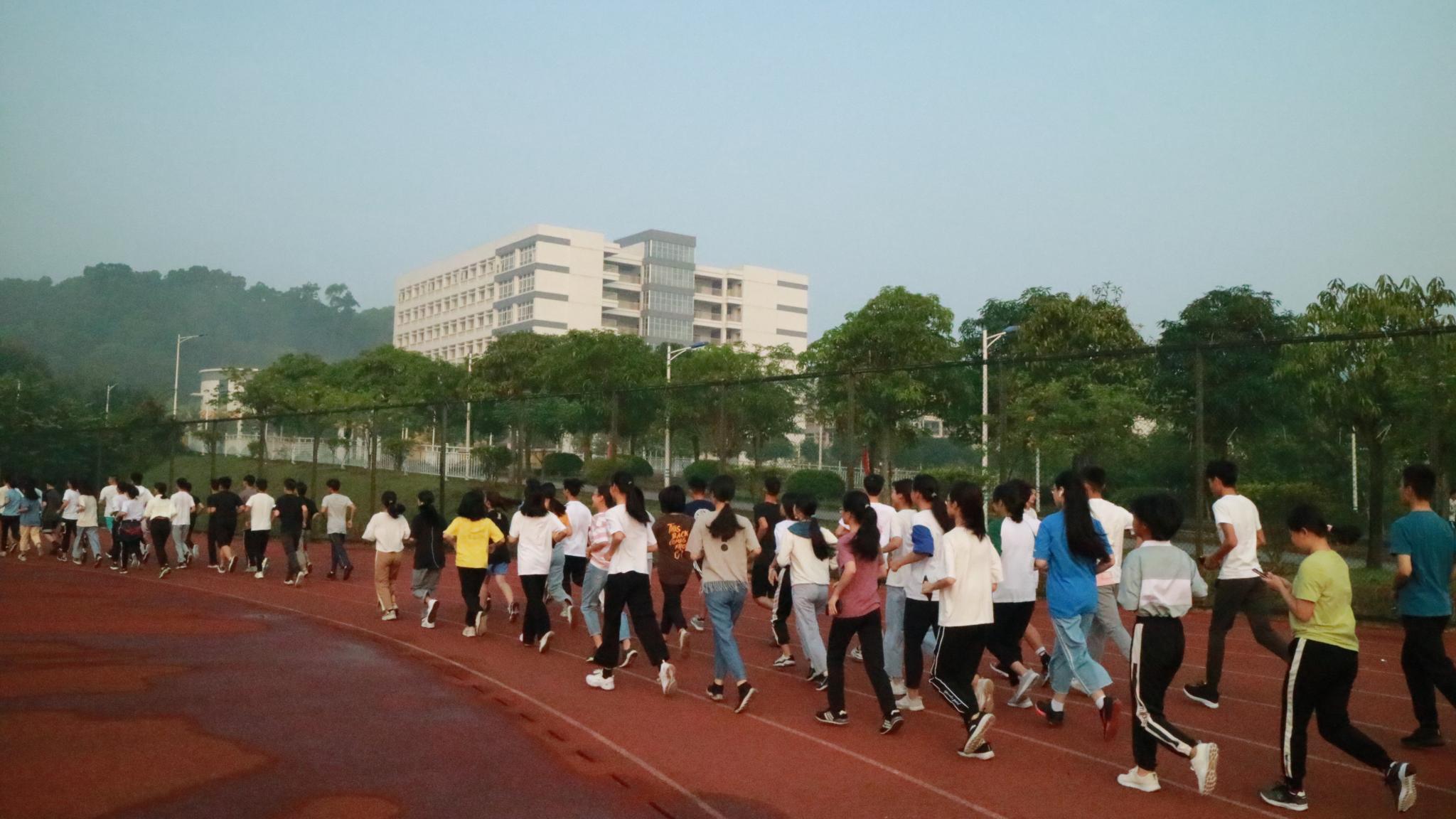 随后,朱路平、李博和许鸿与全体同学一起开始晨跑。同学们以班级为单位,朝气蓬勃的向前跑,在运动场上挥洒青春的汗水。