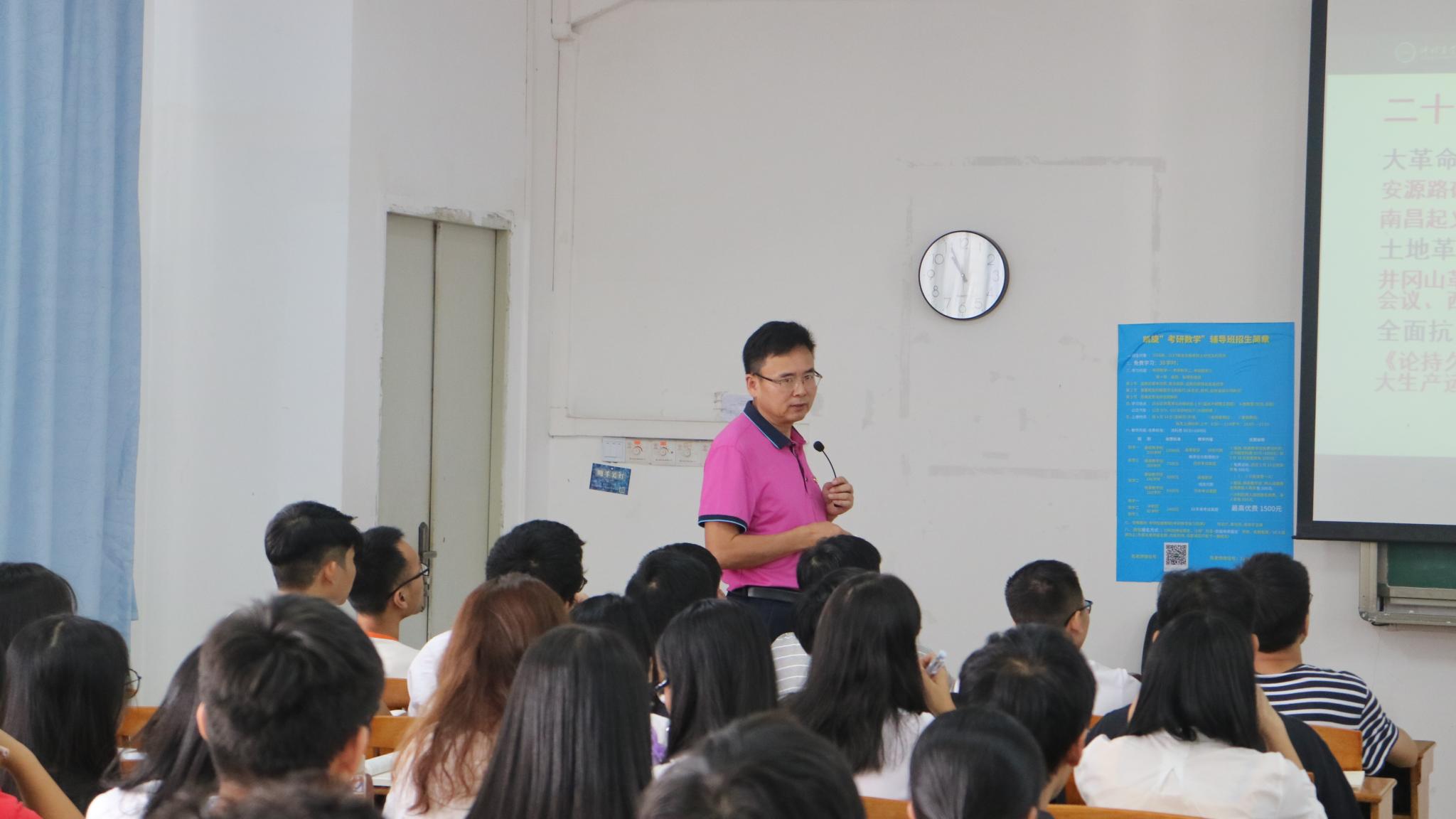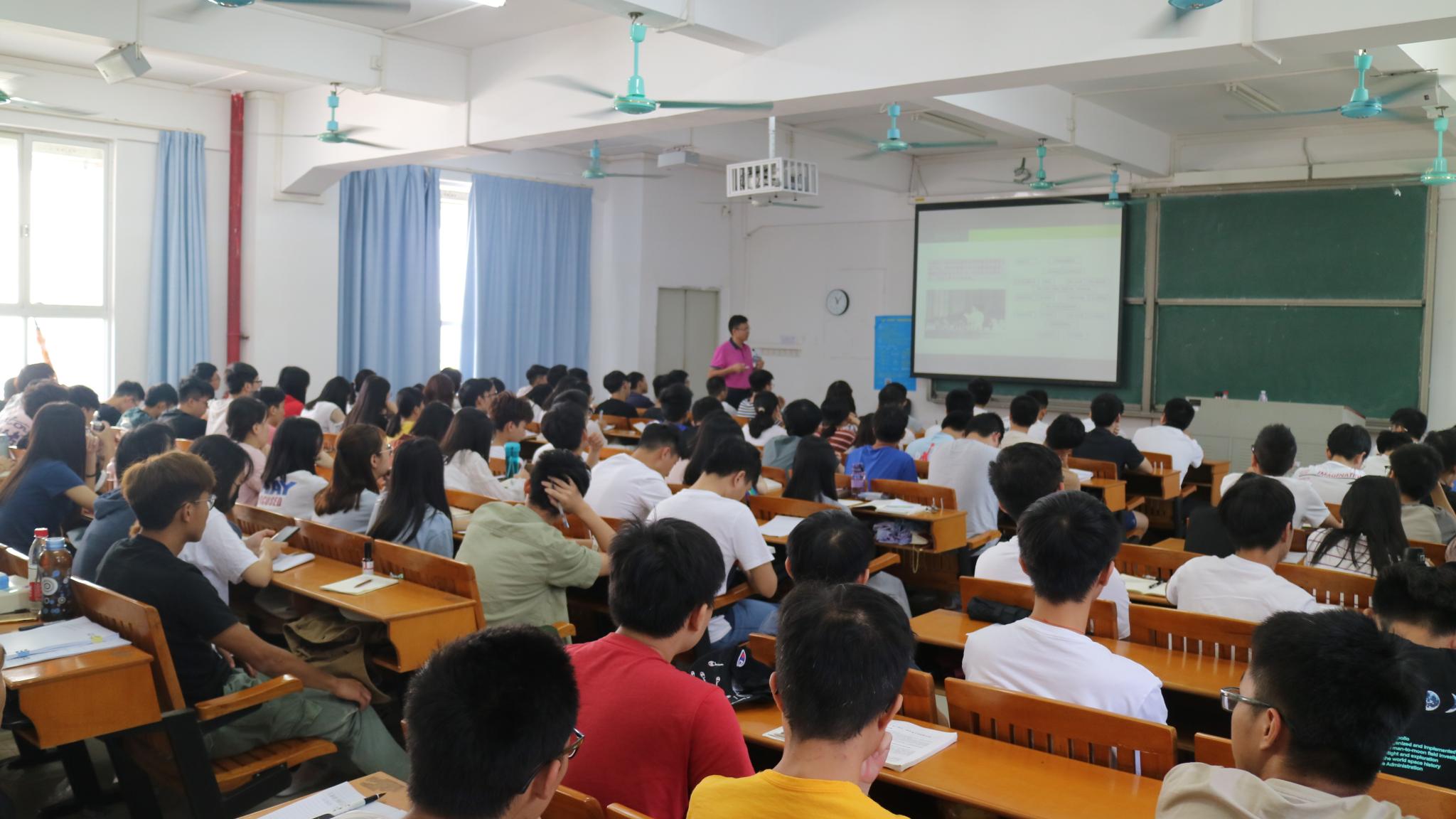 宋书记带领同学们回顾从鸦片战争到五四运动中发生的历史事件,鸦片战争是中国近代史的开端,中国战争的开端,而五四运动则是一场伟大的爱国革命运动,一场中国人民为捍卫民族尊严、体现民族凝聚力的革命运动;随后讲述了中国共产党的诞生到新中国成立之间所发生的浴血奋战的革命历史,提醒同学们一定要铭记为新中国成立艰苦奋斗、无私奉献的革命先烈;接着还为同学们介绍了新中国成立后70年来的伟大成就,提到1978年至今,科研方面有了飞速发展,中国特色社会主义进入了新时代,而我们也正向中华民族伟大复兴的中国梦奋进。宋书记就“牢记办学使命,精心培育英才”这一方面带着同学们回顾仲恺农业工程学院的办学历史、办学理念,并解读了仲恺农业工程学院未来的发展方向和目标。在思政课的最后,宋书记送给青年学生三句寄语:立大志,奋发学习;树目标,练真本事;重品行,提升修养。