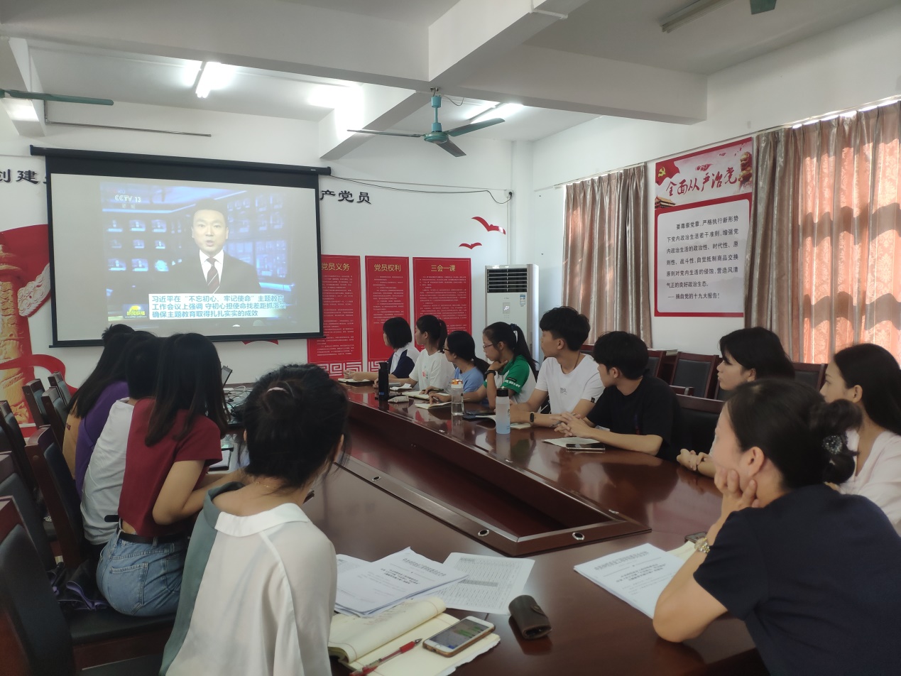 学生党员集体观看了视频——习近平总书记在‘不忘初心、牢记使命’主题教育工作会议上强调“守初心担使命找差距抓落实”,确保主题教育取得扎扎实实的成效。