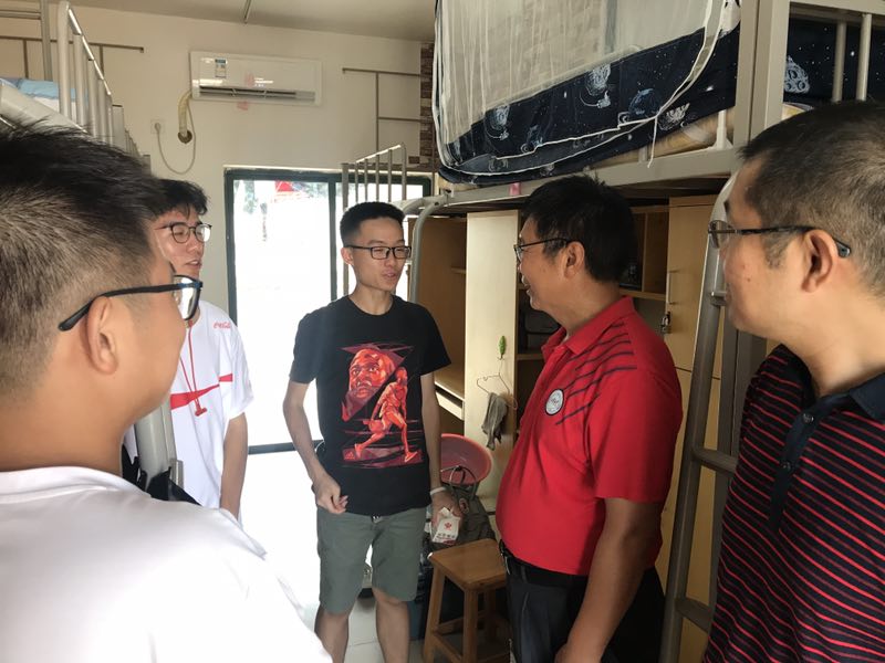 下午,学院领导班子和辅导员走访了每一间新生宿舍,查看宿舍情况,叮嘱学生整理好行李物品,保持与老师及师兄师姐的联系,凡事注意安全,尽快适应大学生活。
