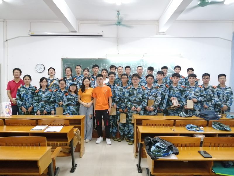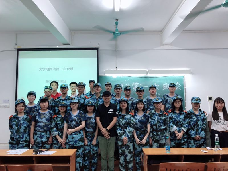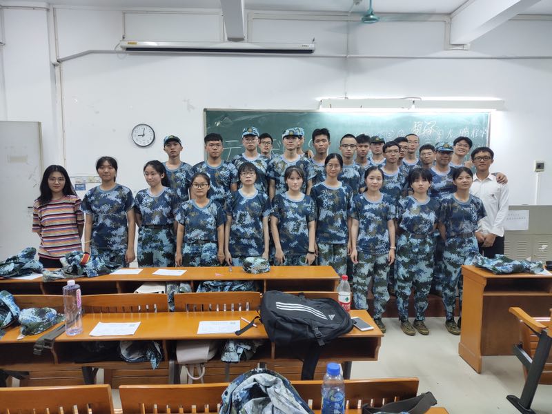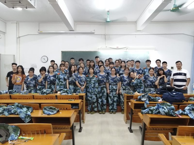 晚上,辅导员李博、军训教官和助班与全体新生举行了第一次新生见面会,军训教官分班级对新生进行了第一次适应性训练。