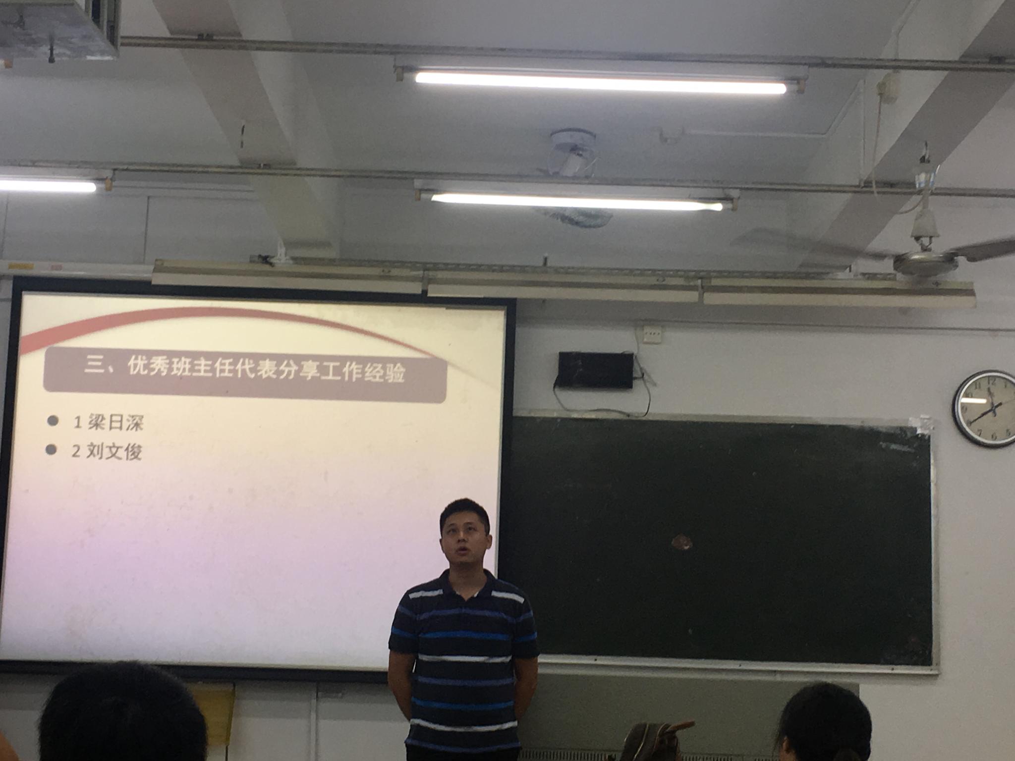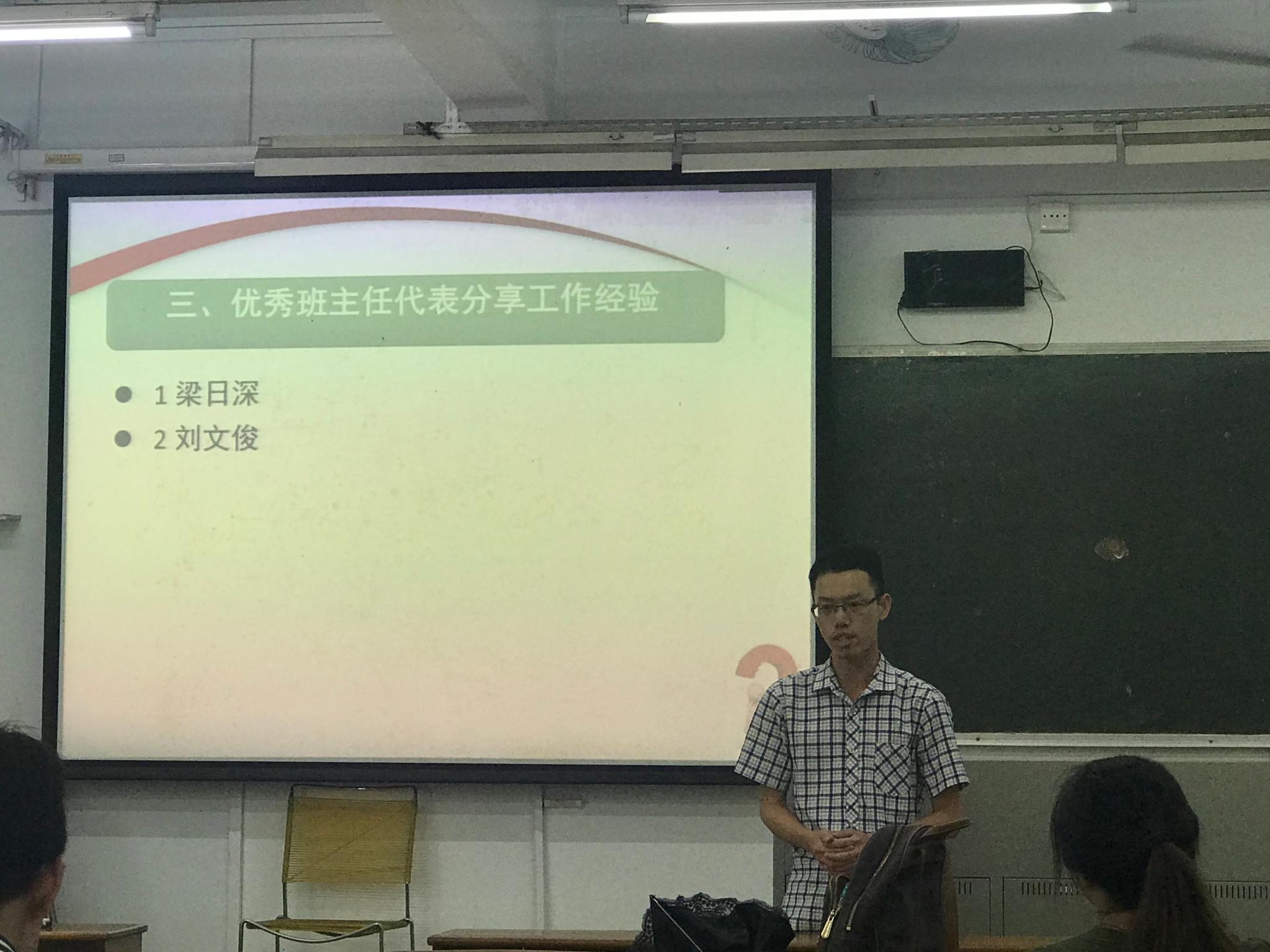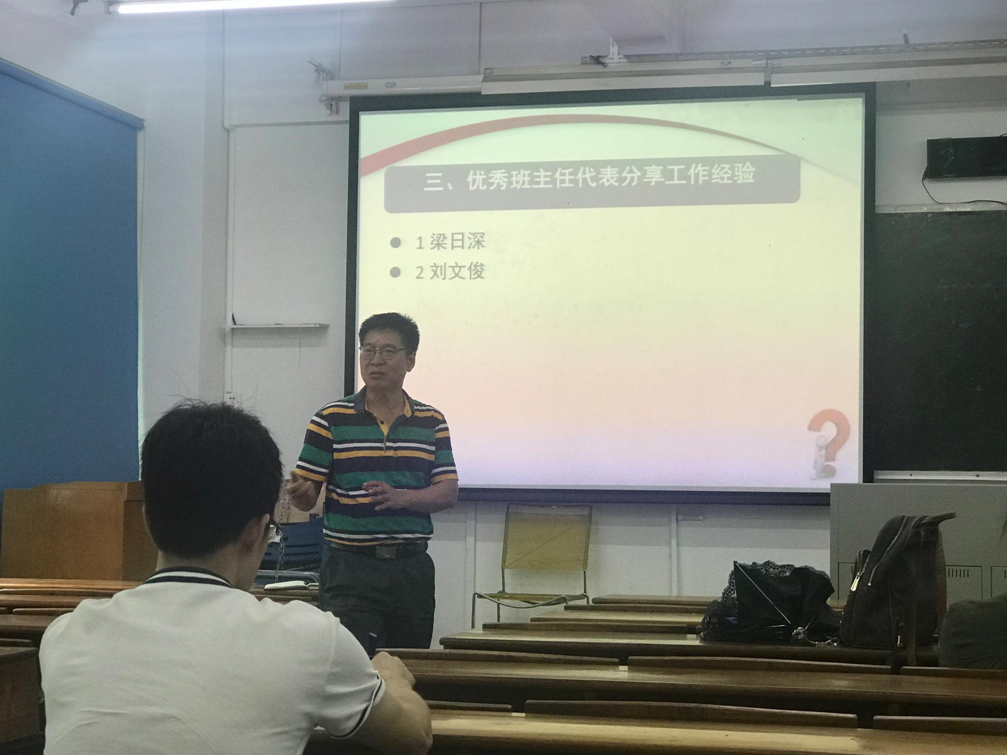 随后,优秀班主任代表梁日深、刘文俊老师分享经验。梁日深提出做好班主任工作要感同身受,保持与学生良好沟通并及时进行有效指导,善于发现和挖掘学生中值得依赖的助手,从记住学生的名字开始,在新生入学的关键期给予充分地关注和关怀,使学生更快更好地融入大学生活。刘文俊老师发言表示班主任要与学生建立良好关系,用心用情用时,引导学生确定目标,积极参加学生各项活动,他强调对于新生一定要做好新生心理疏导工作,带领学生度过大学的迷茫期,成为学生的领路人。