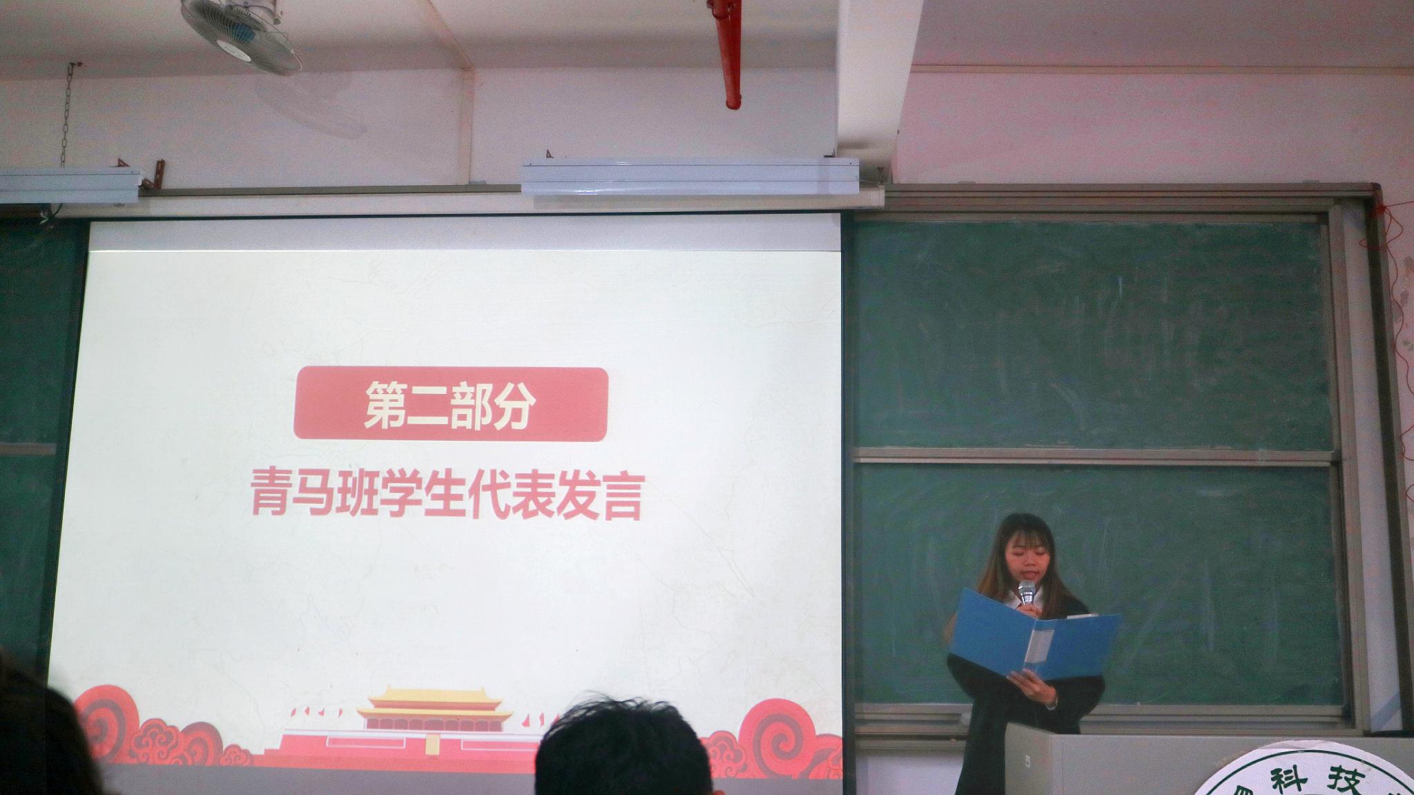 活动在庄严肃穆的团歌中拉开帷幕,动医192班黄佳慧代表青马班学员发言,她介绍了自己加入青马班的缘由,表达了要认真学习马克思主义知识,并将理论运用于实际来提升自我能力的决心。