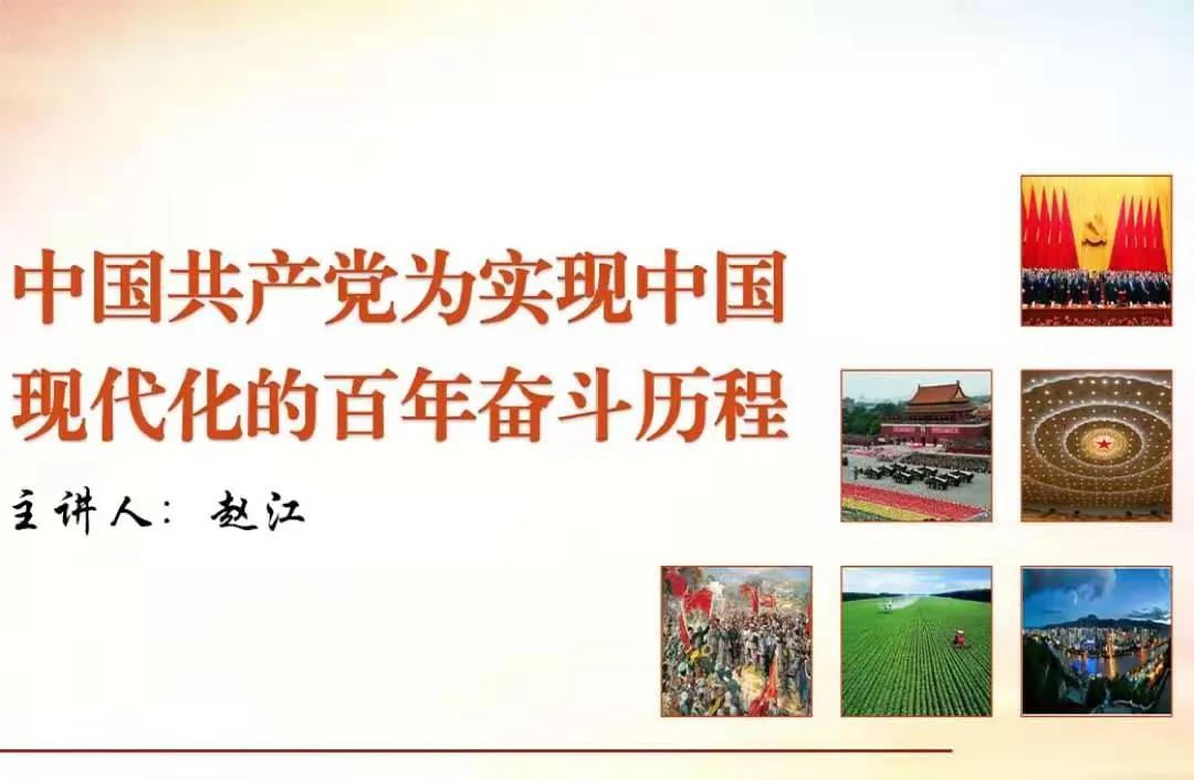 赵江老师课程讲述了从鸦片战争爆发以后,到2021年对“十四五”时期展望的一百多年时间里,中国共产党紧紧依靠人民,历尽千辛万苦,接力探索奋斗,取得一个又一个胜利,为中华民族和世界的发展做出了历史性贡献。课程从“去哪里”、“怎么走”、“那条路”三个阶段介绍了中国共产党的百年奋斗历程,从党的百年伟大奋斗历程中汲取智慧和力量,让广大学生以饱满的精神和奋斗的姿态,为中国共产党建党一百周年献礼。