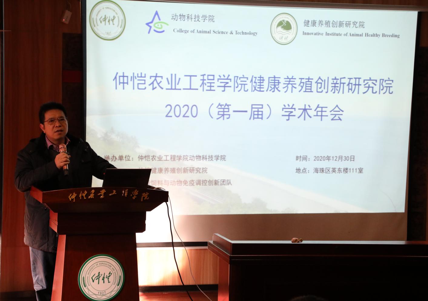 为总结一年来研究院成果,梳理未来研究方向,展示研究院的科研风貌,2020年12月30日在海珠校区学术报告厅举行了健康养殖创新研究院2020年首届学术年会。共有十三位年轻教师及研究生进行了学术汇报。科技处副处长林进添教授,国产激情在线书记欧坚泉、副书记朱路平,动科院部分教师、研究生及研究院全体师生参加了本次会议。广东省农业科学院动物科学研究所水产研究室主任王国霞、副研究员彭凯以及研究院特聘企业专家、广州飞禧特生物科技有限公司总经理刘兴旺博士以及部分企业技术专家闻讯前来参加了本次年会。