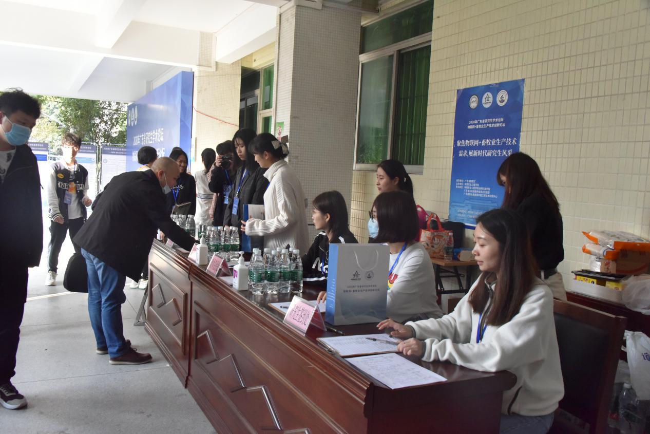 同时我院组织10名学生志愿者参与协助本次活动,志愿者们按照会场老师的安排各司其职,分工有序,为来自各高校的专家、学子提供更好更贴心的服务,确保我院主办的“2020年广东省研究生学术论坛—物联网+畜牧业生产技术创新论坛”活动有序进行。