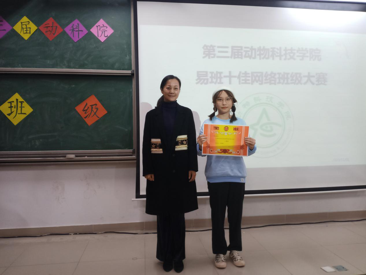 参加本次比赛的选手有十七个班级代表,参赛选手神采奕奕地进行演讲,各班级代表围绕着本班的班级介绍、班级建设以及易班活动的线上成果进行演讲与展示,并介绍了所属班级的班徽、班公众号以及展示团日活动、篮球班赛、男女生节、生日会等课余活动,充分展现出各班的特色与风采。在场座无虚席,大一到大三的同学积极地为自己的班级加油打气。比赛分为上下两场,为增加比赛的趣味性,两场赛间安排有歌唱表演节目,使得紧张的比赛氛围变得轻松活跃起来。通过统计评委们的评分数据,评出获得一等奖的班级是动医191,获得二等奖的班级有动医181、动医192,获得三等奖的班级有水产181、 水产192、水产201,获得最佳演讲员奖的是黄源彬。嘉宾为他们一一颁发奖状。最后由朱路平对本次活动进行总结,她表示易班为我们提供了无限的创造空间,希望每个班级都能充分利用易班这个平台,更好地建设班集体。本次比赛在到场的嘉宾与参赛选手的合影下而落下了帷幕。