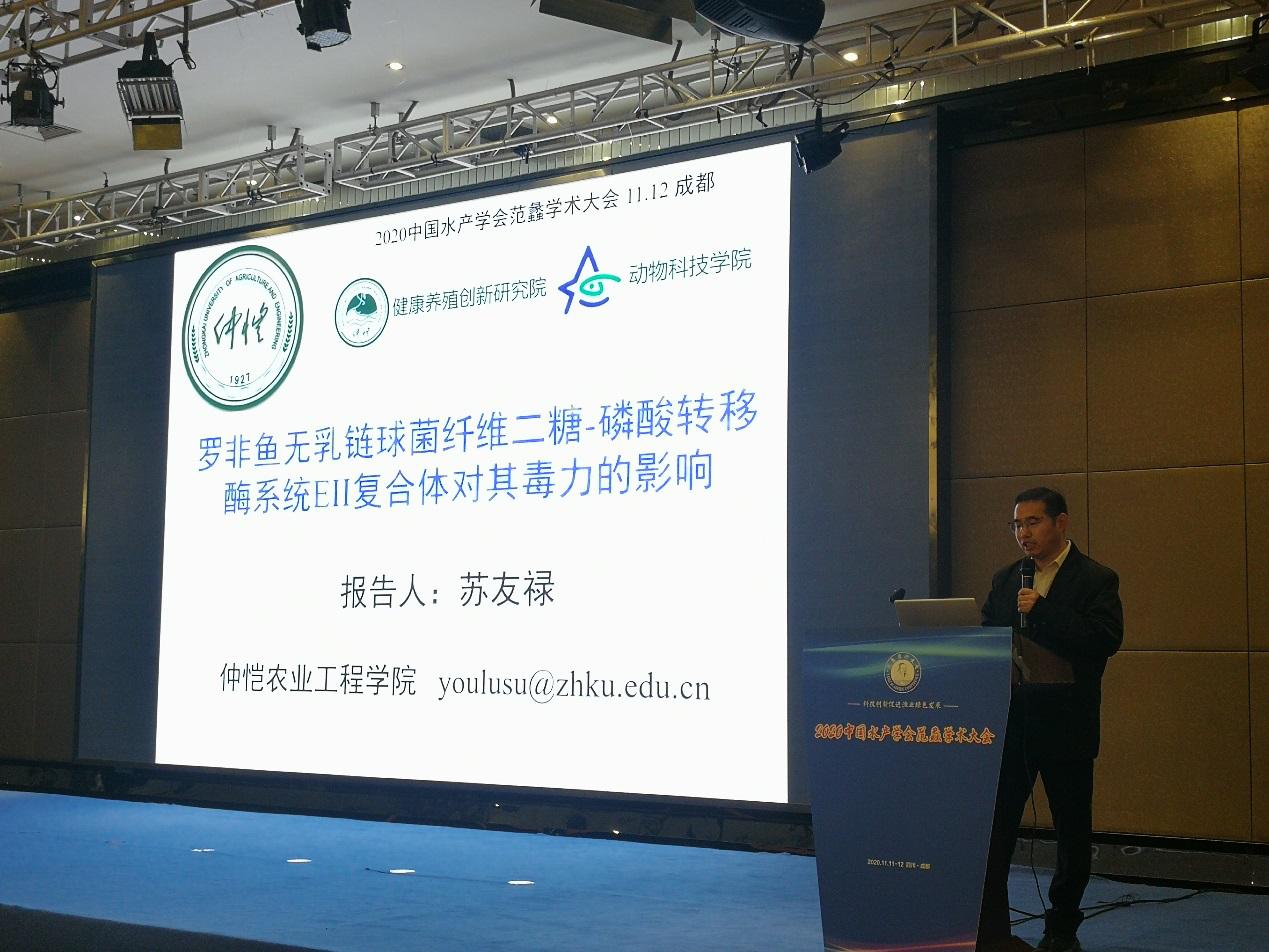 11月10-13日,国产激情在线/健康养殖创新研究院水产病害防治团队在苏友禄副教授带队下一行5人参加了在成都召开的2020中国水产学会范蠡学术大会,团队苏友禄副教授提交的《罗非鱼无乳链球菌纤维二糖-磷酸转移酶系统EII酶复合体对其毒力的影响》和江飚博士提交的《一种防控刺激隐核虫病杀虫涂料研发》入选会议口头报告,刘春博士提交的《鱼类类结节病病原舒伯特气单胞菌的致病机制研究》入选会议墙报,代表学院和研究院与全国同行交流了工作进展。