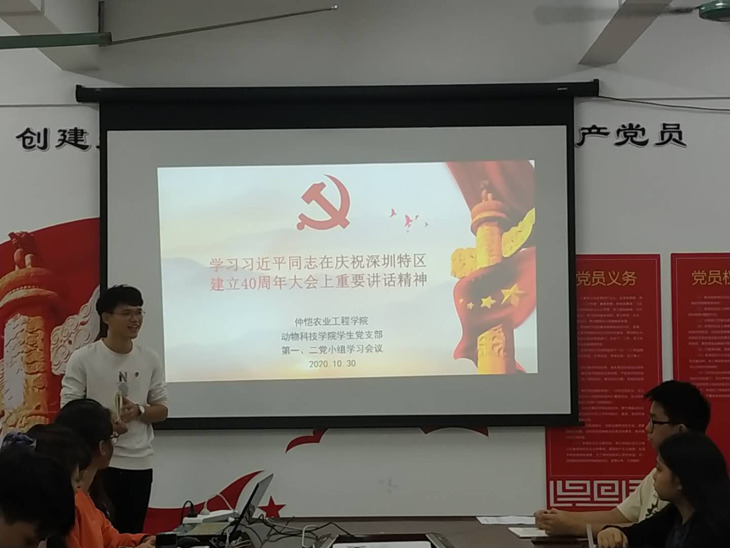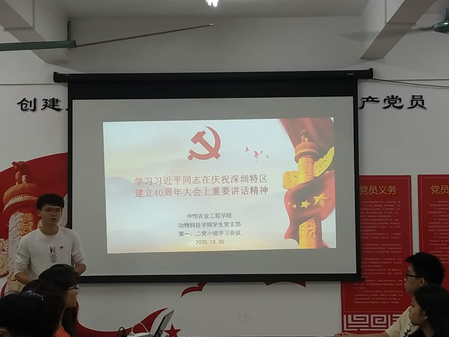 为深入贯彻党的十九大精神,落实“两学一做”的要求。国产激情在线学生党支部于2020年10月30日在党员活动室314组织开展“关于习近平总书记在深圳特区建立40周年庆祝大会上重要讲话精神”的学习活动。会议由党员谭韬主持。