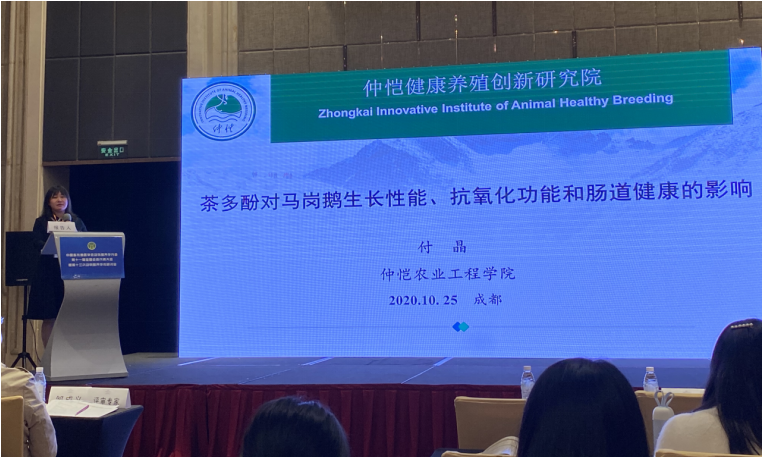 10月24-26日,健康养殖创新研究院执行院长黄燕华教授带领饲料与营养免疫团队主要人员参加了在成都召开的动物营养学会第十一届全国会员代表大会暨第十三次动物营养学术研讨会,团队付晶副教授提交的《茶多酚对马岗鹅生长性能、抗氧化功能和肠道健康的影响》入选会议口头报告,代表研究院与全国同行交流了工作进展。