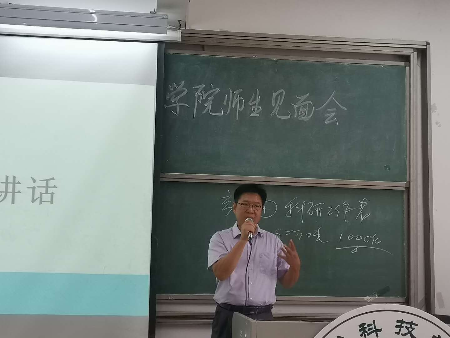 会议开始,副院长黄运茂介绍了学校的沿革、现状以及学院在师资队伍、教学科研、实验平台、人才培养等方面的孜孜建设和累累硕果。他表示,学校和学院现在都是高速发展阶段,希望同学们努力学习,与学校、学院一起成长,成为一名合格的大学生。