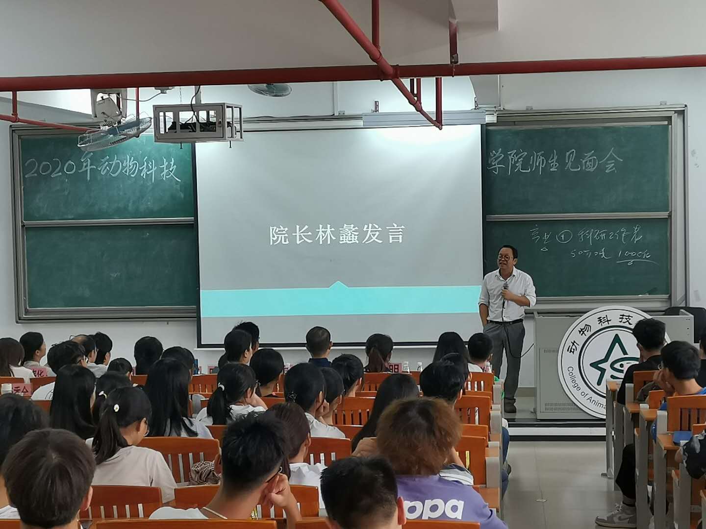 随后院长林蠡风趣幽默的分享了他的求学和成长之路,同时对新生提出要求:一要搞好肉蛋奶,为祖国提供强大支持基础。二要两条腿走路,学好专业课的同时也要注重实践,将农牧产业做大做强。三是国家现在也越来越重视专业建设,全院师生一起努力,建立一流专业。