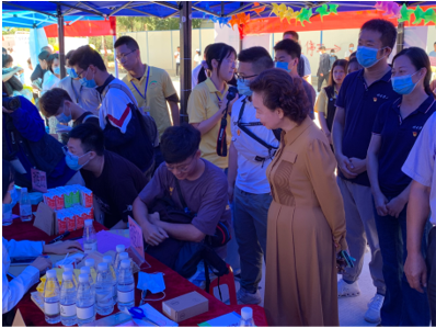学校校长程萍、副校长朱立学、副校长张文峰等校领导到报到现场进行慰问,检查迎新工作的开展情况,并对工作人员的工作进行肯定。同时,校领导与我院学生家长、新生进行亲切交流,了解学生家庭情况、专业思想等。