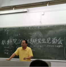 林蠡院长以“为什么而学”开篇,引发同学们对本专业的思考,引导学生以正确的心态投入未来三年的学习生活中,同时对新生提出要求:一是建立自己的科研信用,做出科研成果;二是为产业做贡献,发挥专业优势,为市场供应优质的肉、蛋、奶、鱼虾类水产品;三是跟着导师做好研究,一步一个脚印,积极主动联系导师,踏实静心做好科研。