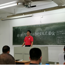 会议的最后,梁日深副教授代表导师发言,他和新生分享课程学习、奖学金评选以及论文设计符合专业设置过程中的注意事项,提醒新生在今后的科研实验过程中要注意安全,遇到科研瓶颈时要放平心态,提升心理素质。