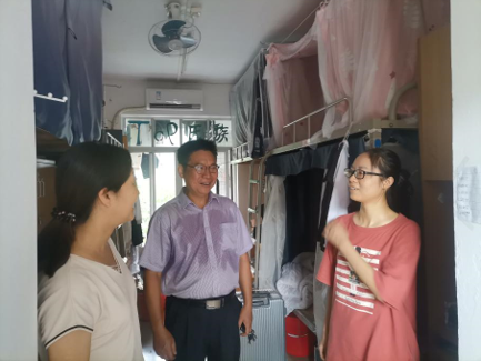 9月1日下午,国产激情在线党总支书记欧坚泉、副书记朱路平和辅导员许鸿、李博走进学生宿舍,看望、慰问新学期返校学生。