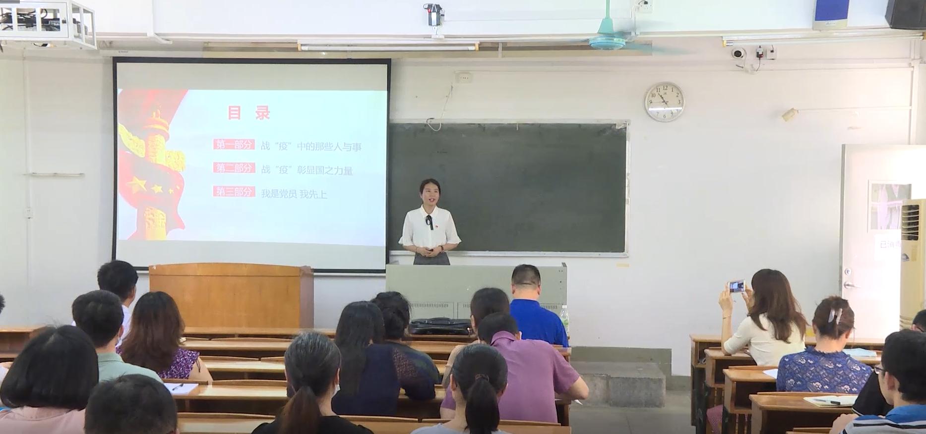 刘春朋老师以“防控新冠肺炎疫情取得的工作成效”为切入点,指出我国国家制度和国家治理体系的显著优势,是我们增强定力、坚定信心的基本依据。我们有信心、有能力、有把握打赢疫情防控人民战争、总体战、阻击战,将疫情影响降到最低,如期实现全面建成小康社会的目标任务。