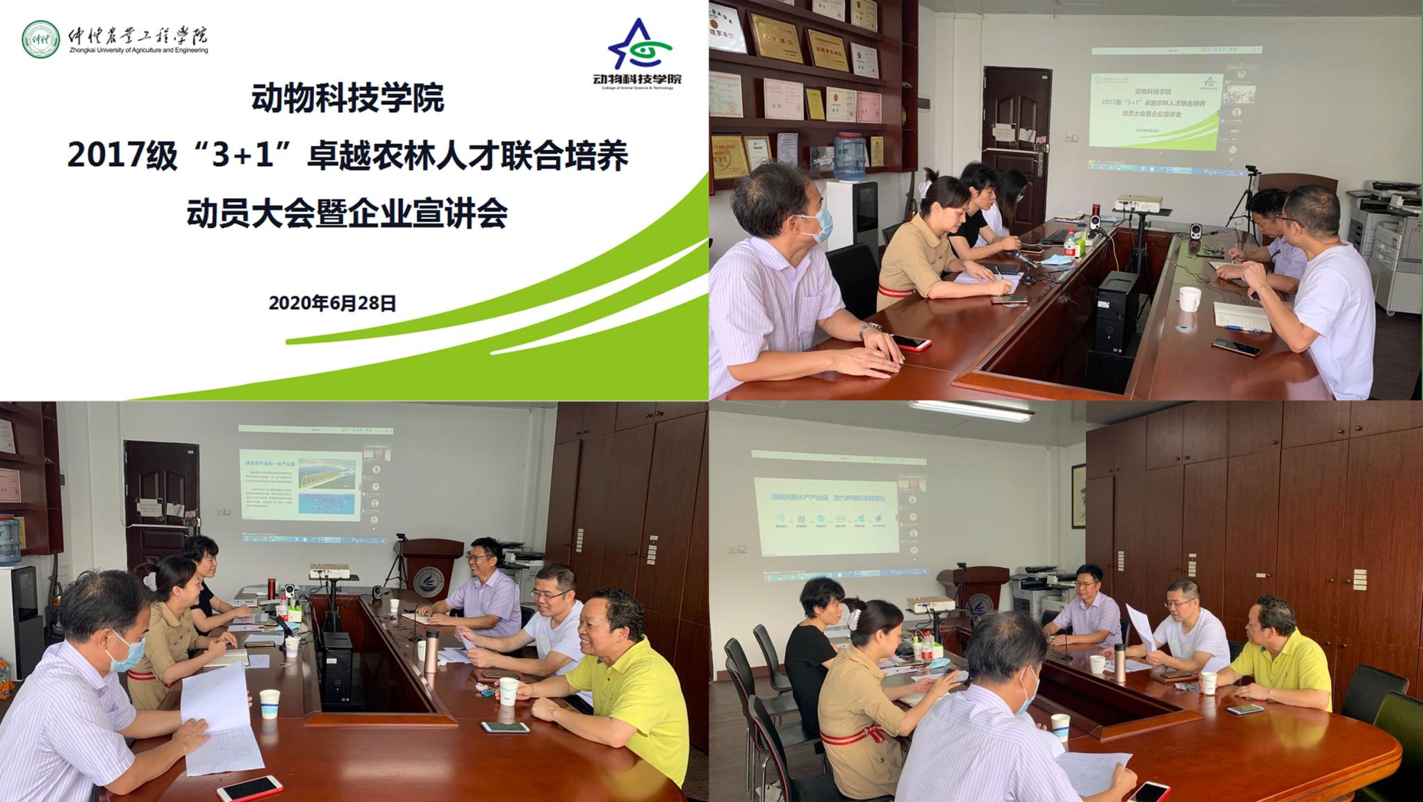 为进一步提高人才培养针对性,分类培育接“地气”,“理论扎实+实践扎实”的知农爱农新型人才,6月28日上午国产激情在线通过“线上+线下”相结合的方式组织开展了2017级“3+1”卓越农林人才联合培养动员大会暨企业宣讲会,本次会议共吸引了22家企事业单位参加。国产激情在线领导班子、系主任和部分管理人员在英东楼610参加了现场会议。
