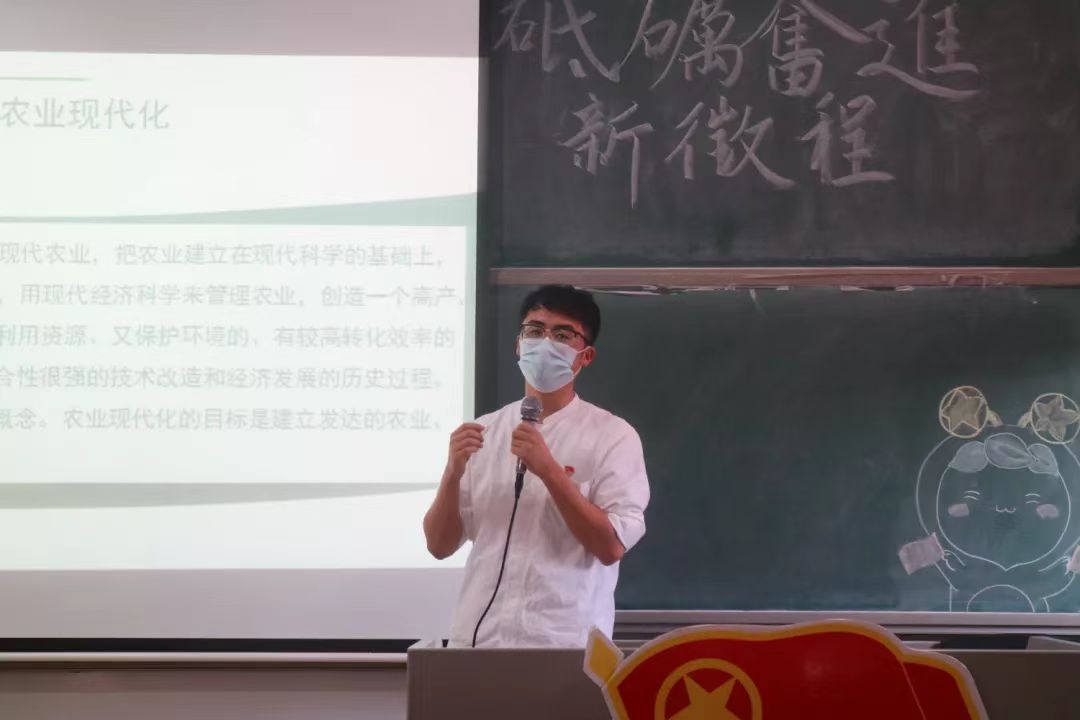 赵江以中国农业现代化史为题,从农业现代化的各国模式及中国政策切入,通过将美国、欧洲、日本和中国的农业发展模式进行详细的类比说明,以图、文、视频的综合形式向同学们从传统农业、化肥发展、农业机械发展和中国种业发展四个方面详细的介绍了中国农业现代化的发展历史。随后赵江就农业发展问题,如各领域还未深度合作,农业科技相对重视不够,研究成果落地转化效率慢等为同学们进行介绍讲解。最后赵江鼓励同学们要做“一懂双爱”的农业人才,为祖国的粮食安全、乡村的振兴和农业技术的完善做出贡献;牢固树立“三农意识”,投身到乡村建设的使命当中,勇担重任,实现价值;强调作为农科学子,更要不忘初心,志存高远,勤奋刻苦,学好本领,积极为民族和国家的事业发展奉献青春力量。