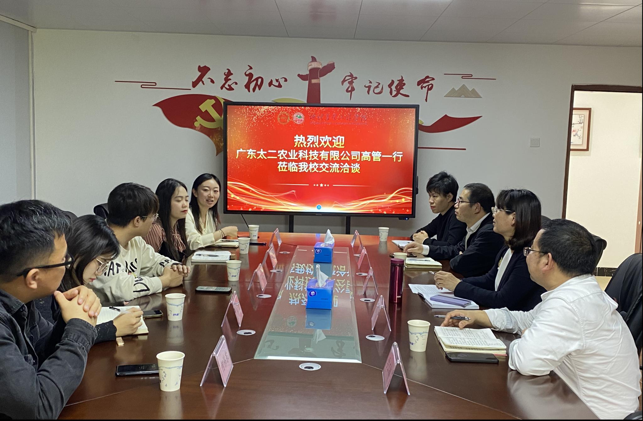 3月3日下午,广东太二农业科技有限公司邓嘉辉总经理一行到我校参观交流并签订合作协议。科技处副处长曾晓房教授、健康养殖创新研究院执行院长黄燕华教授及研究院骨干教师共6人参加了交流对接活动。
