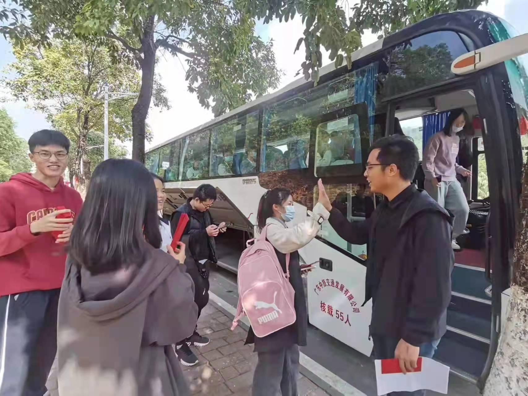 国产激情在线组织了两台大客车,送在校备考的83名同学前往考场,同时还准备了“送考”红包,配备祝福卡片,为动科院考研学子加油鼓劲。活动现场一片其乐融融的景象,考研学生的脸上都有几许期待,几许紧张,大家相互鼓励,相互加油,递送温暖。学院为考研学子精心准备了逢考必过红包,寓意着所有的考研学生都能“考的都会,写的都对”。每个红包都装了专属名字的祝福卡片,上面写着“金榜题名,一举成功”,表达了学院对考研同学最真挚的祝福。在考生们井然有序上客车时,朱路平和郑晓文均站在车门侧与他们击掌,鼓励同学们昂首阔步进考场,自信满满上战场,并送上了最诚挚的拥抱,同学们都倍受鼓舞。最后,朱路平在车上叮嘱同学们要记得带好准考证和必备的考研工具,注意人身安全,保持良好的睡眠,自信考试。