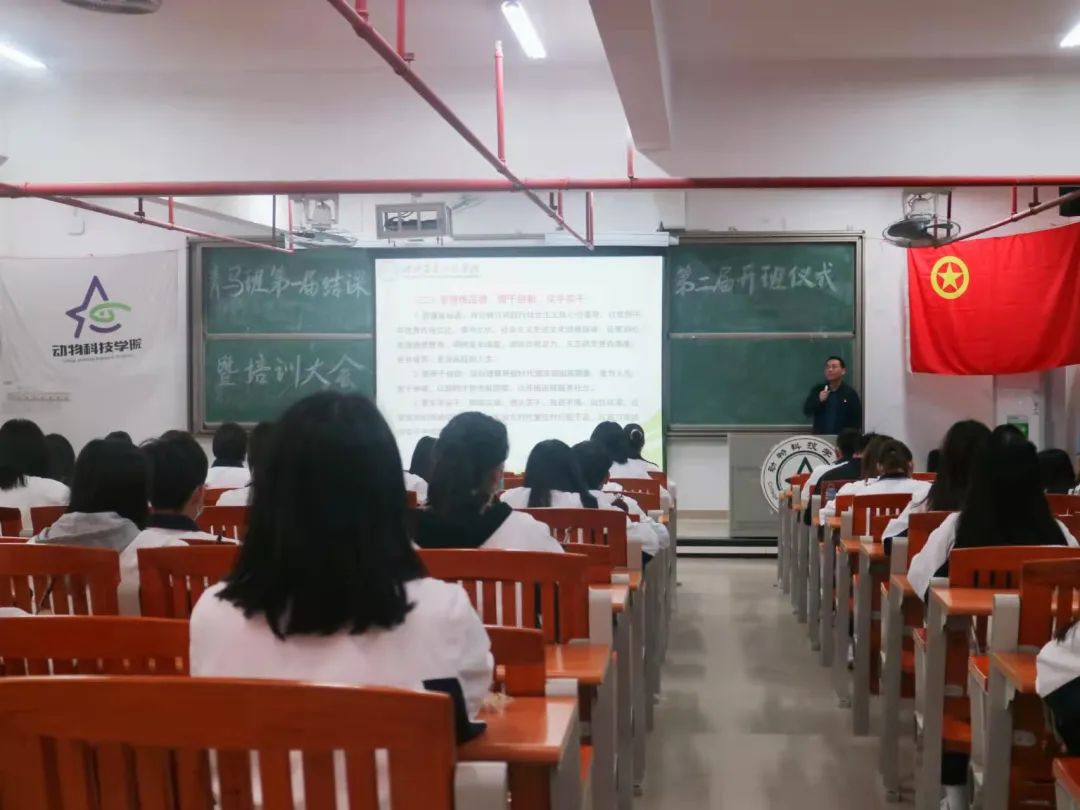 学院党委副书记朱路平主持党课,辅导员许鸿、赵江、关敏、全体学生党员、青马班学员及团学组织代表参加党课学习。