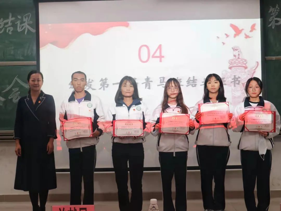 会议伊始通过一段视频回顾青马班过去的一学期,为大家展现了青马班的风采。接着由第一届青马班学员王育川和陈静仪分别做了以“了解党史程度及对党史活动看法问题”和“大众接受党史教育情况”为题的调研汇报,张铮悦、黄佳慧做学习心得分享。这四位同学从自己的切身体会出发谈到自己参加培训的经历、感受和收获,通过青马班的学习,他们在思想与精神上都得到了一次新的洗礼,并对马克思主义理论有了新的认识,加强了自身的理想和信念教育,增强了政治信念的坚定性。随后朱路平为第一届青马班学员们颁发结业证书并举行授旗仪式。此后第二届青马班学员代表陈仪发言,她代表全体青马班同学承诺:严格遵守青马班的规章制度,积极参加学校组织的各项学习及实践活动,了解关心时政。她在思想、学习、工作和生活四个方面对自己做出了规划,希望能够努力成为一名真正的青年马克思主义者。