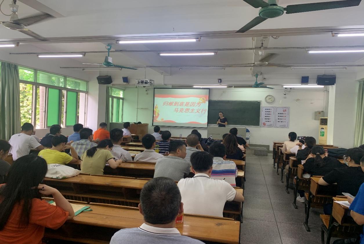 10月15日下午,国产激情在线和化学化工学院在海珠教学楼208联合举办学习习近平总书记“七一”重要讲话精神专题宣讲会。学校宣讲团成员、马克思主义学院饶异教授应邀作题为“归根到底是因为马克思主义行”的专题辅导报告。国产激情在线党委书记欧坚泉、副书记朱路平、化学化工学院院长舒绪刚、副书记严丽纯及教工党员共计86人参加。