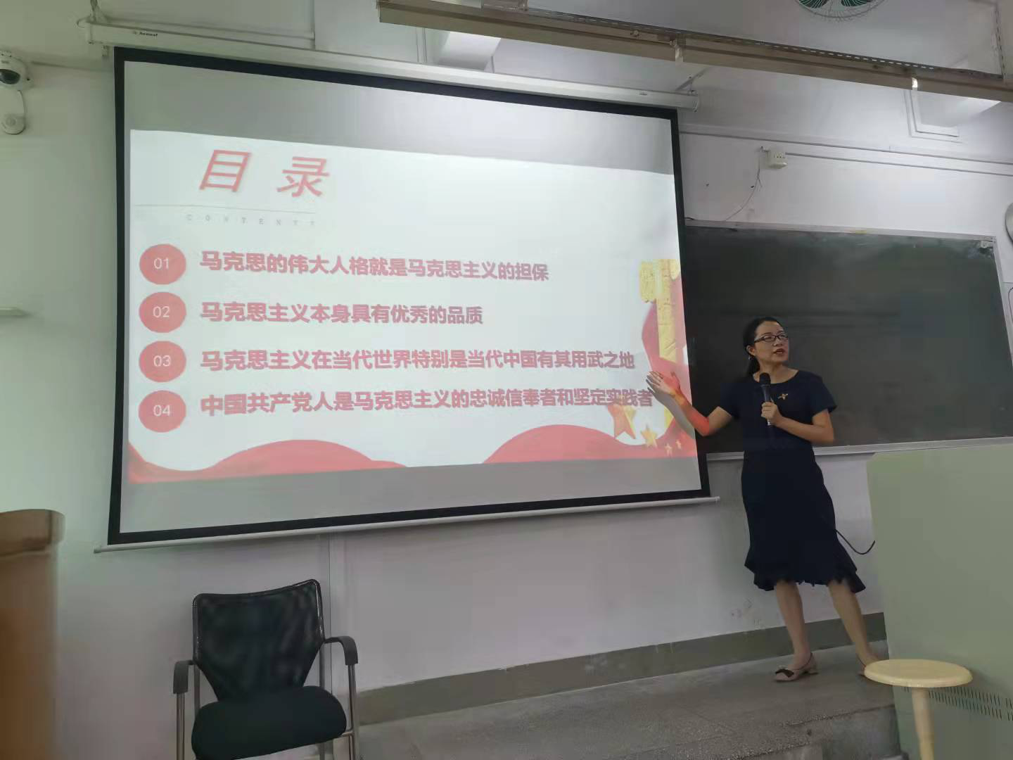 宣讲会上,饶教授围绕“马克思的伟大人格就是马克思主义的担保”“马克思主义本身具有优秀的品质”“马克思主义在当代世界特别是当代中国有其用武之地”“中国共产党人是马克思主义的忠诚信奉者和坚定的实践者”等四个方面旁征博引、深刻生动地归纳梳理和介绍了马克思主义理论的八大亮点。她指出习近平总书记在庆祝中国共产党成立100周年大会上明确表示:“中国共产党为什么能,中国特色社会主义为什么好,归根到底是因为马克思主义行!”,这一重要论述是对马克思主义指导作用的科学认识,揭示了中国共产党不断发展壮大、中国特色社会主义不断取得伟大成就的根本原因。