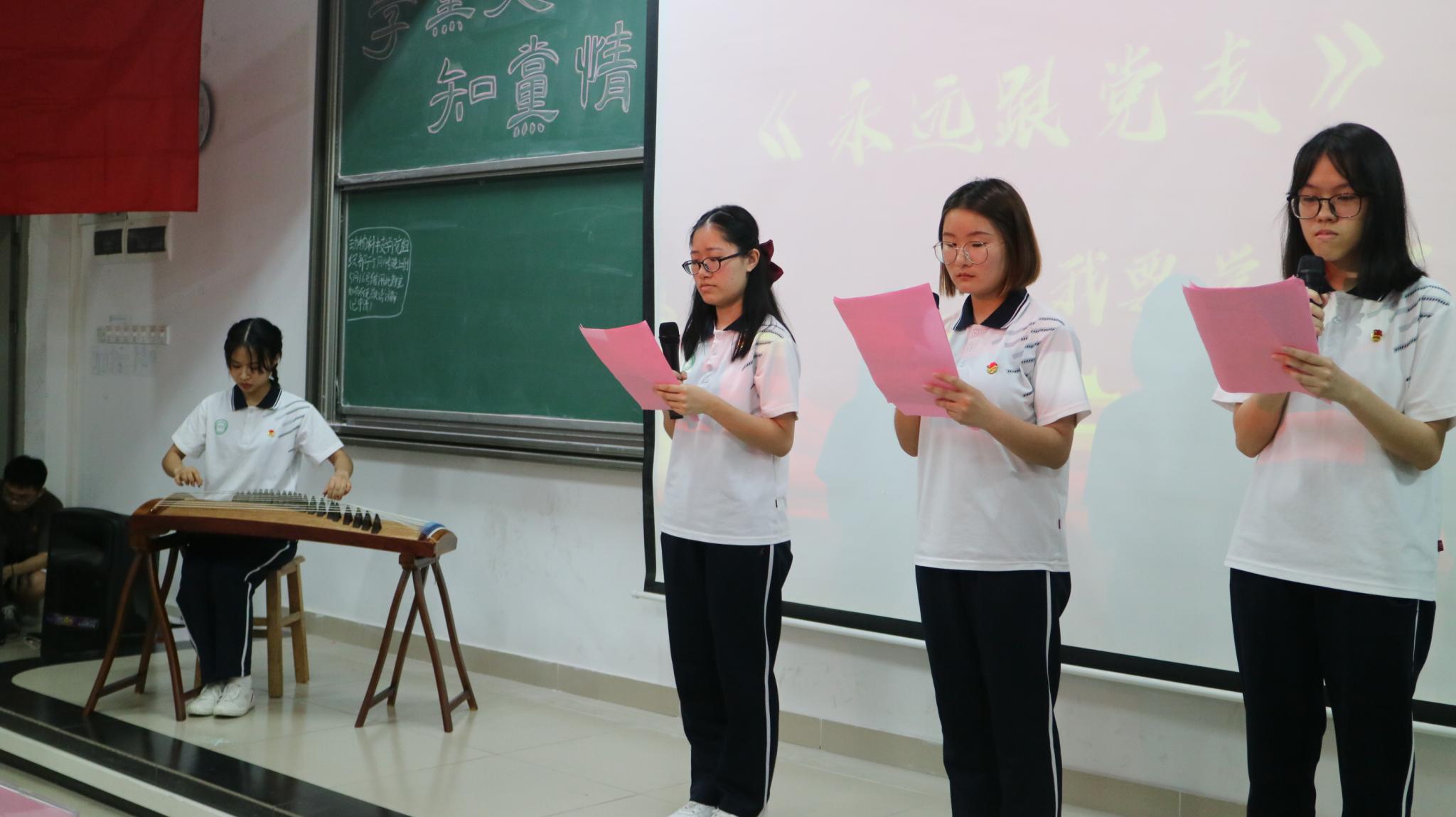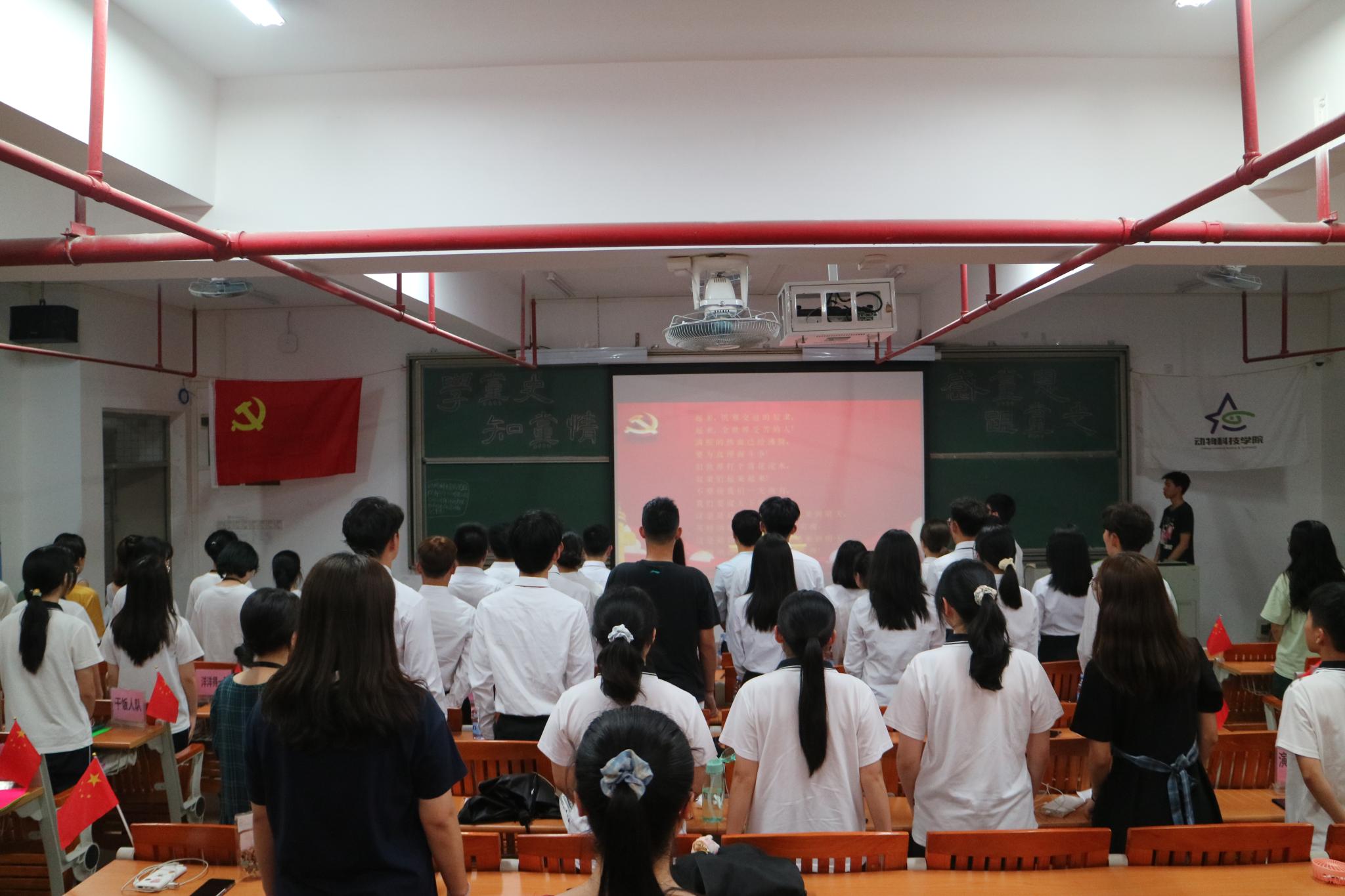 主持人介绍完毕后,大赛正式拉开帷幕。第一环节是党史知识竞答,各队分别选择套题在规定时间内回答,各个队伍踊跃参与答题,竞争激烈;第二环节是各个队伍进行问答,通过举牌的方式给出答案,每当到大屏幕出现问题一刻,各个队伍积极举牌,不相上下。第三环节是进行建党100周年演讲比赛,分别由动医201蔡岚带来演讲《觉醒的焰火》、水产201程梦娜带来演讲《以史为鉴,砥砺前行》、动医192金少冰带来演讲《回望百年历史,开创未来新章》、动科201王璇带来演讲《重温党史,青年笃行》、动医201陈晓欣带来演讲《传承红色基因,讴歌百年奋斗》每一位选手的演讲,赢得台下评委观众阵阵掌声。第四环节是队伍的才艺表演展示,洋洋得一队带来表演《国家》、我要学党史队带来表演《永远跟党走》、干饭人队带来表演《我爱你,中国共产党》、全都队带来表演《我的祖国》、吉祥四宝队带来表演《翻开历史那一页》和陈二列横队带来表演《强军战歌》。他们的表演深深震撼了在场评委与观众,其中来自我要学党史队带来的《永远跟党走》最为引人入胜,他们声情并茂的朗诵并伴有娓娓动听,余音袅袅的现场古筝弹奏,赢得满堂喝彩。