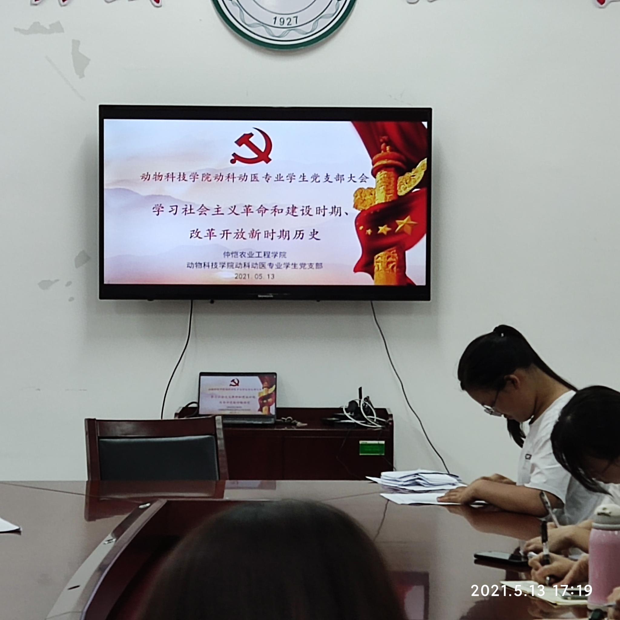 2021年5月13日下午,国产激情在线动科动医学生党支部在刘宇新楼314组织召开支部大会,组织党员学习党史之“社会主义建设的探索和曲折发展”。支部书记许鸿和动科动医专业学生党员参加本次会议。会议由支部书记许鸿讲党课。